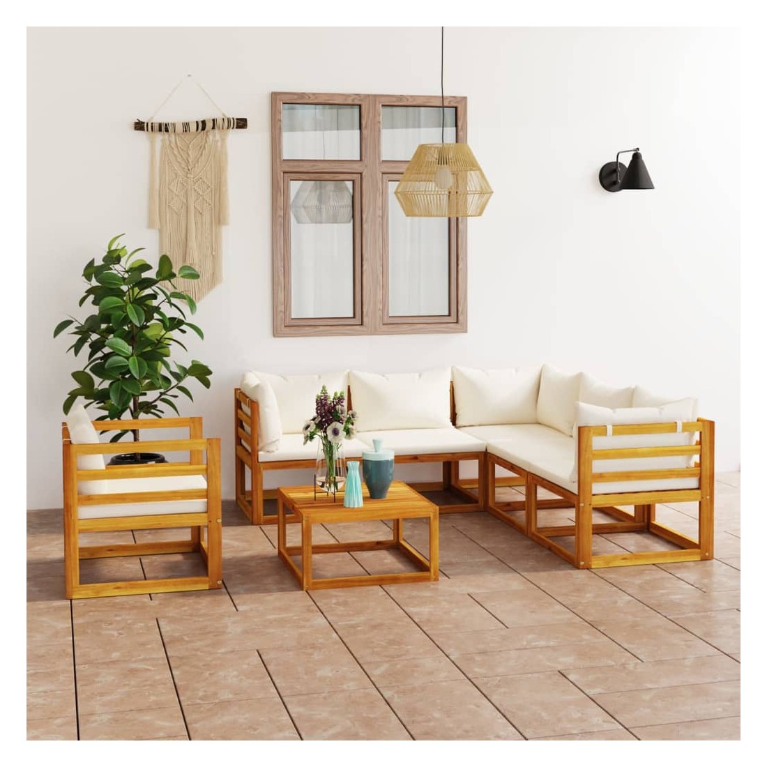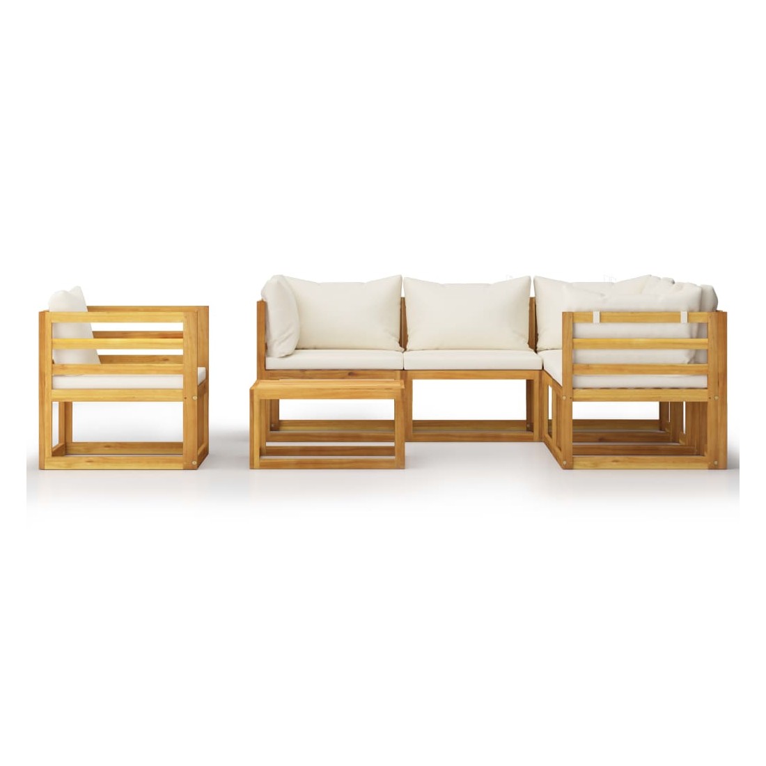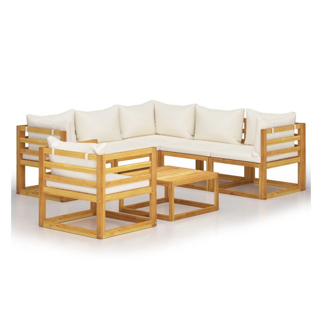 Salon de jardin 7 pcs avec coussin Crème Bois d'acacia solide