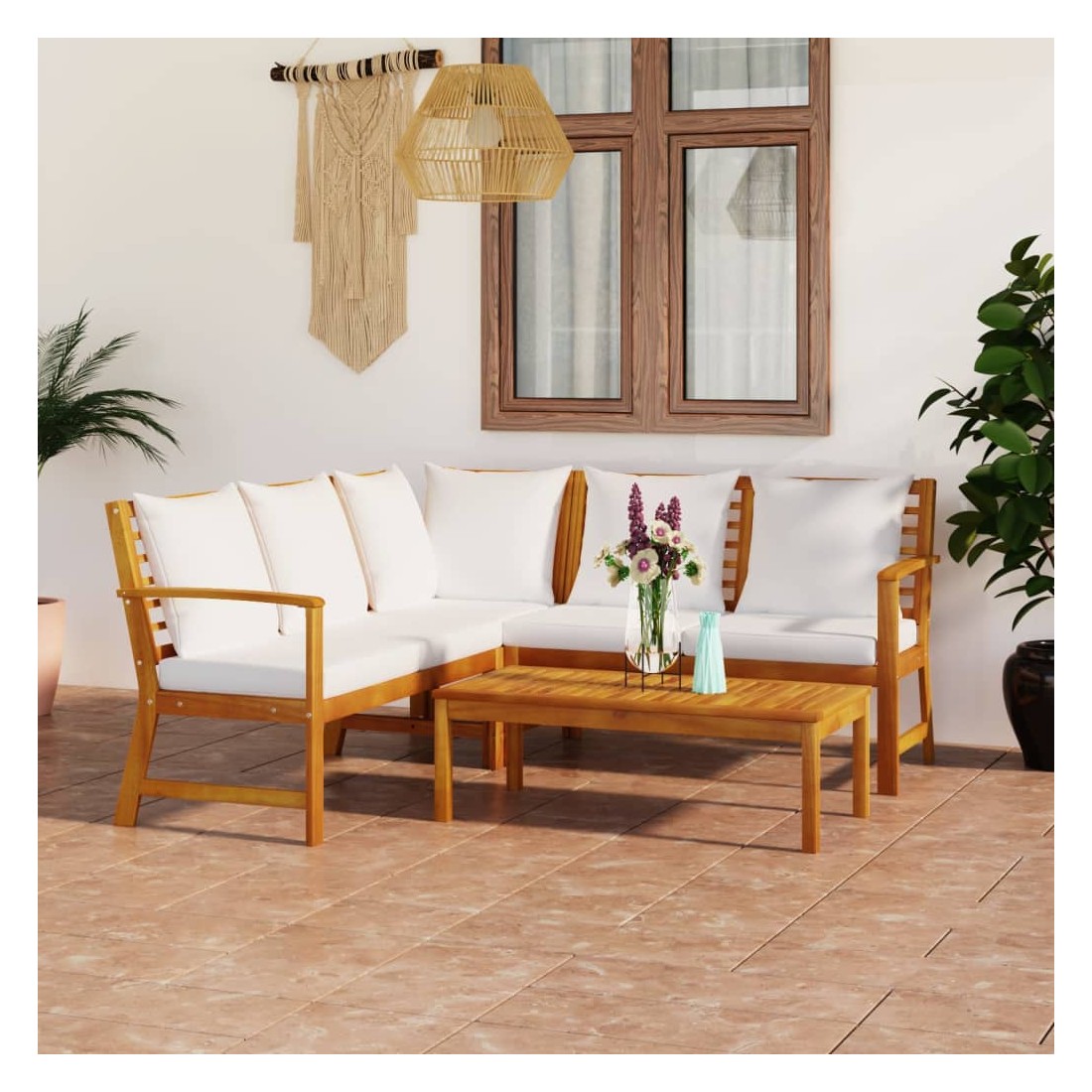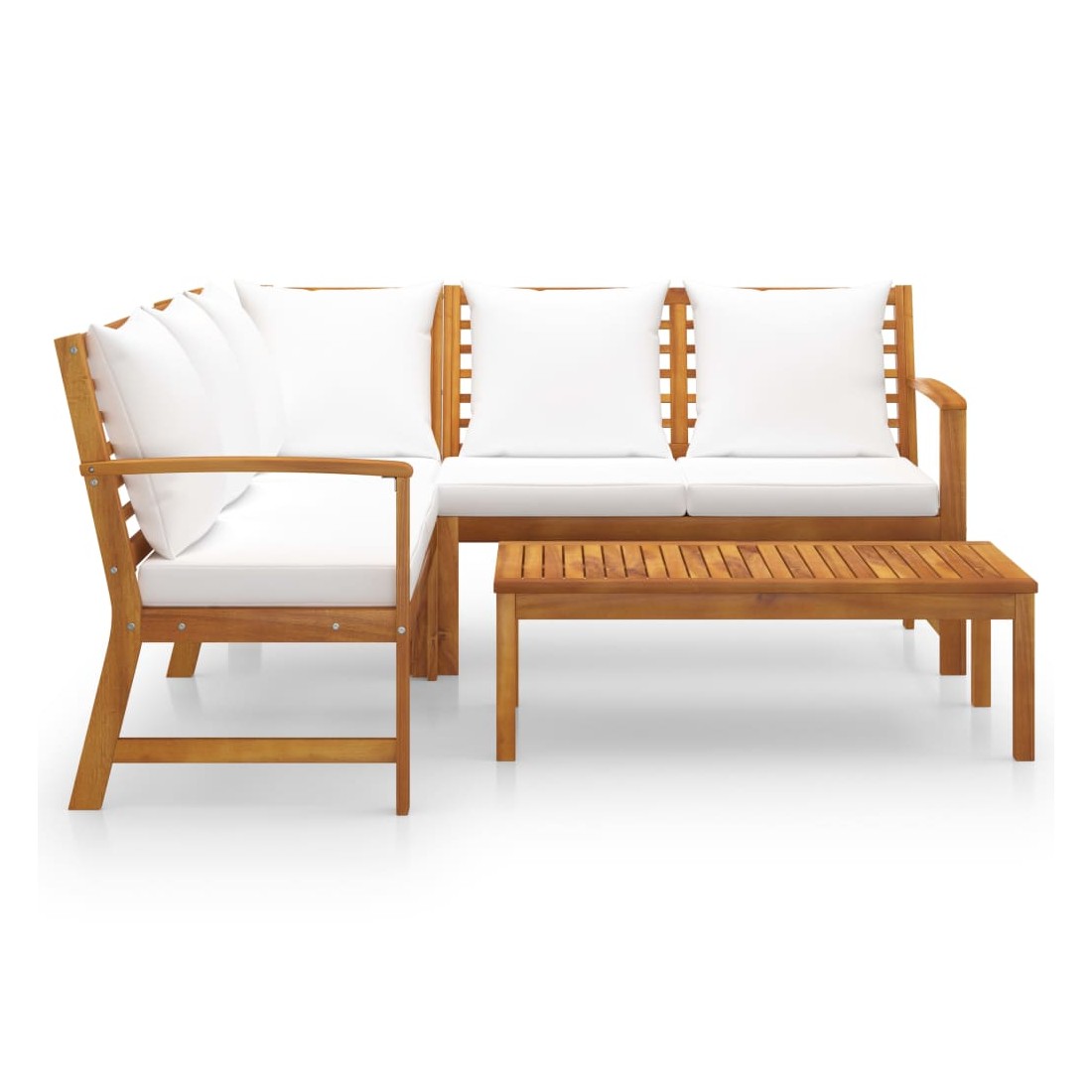 Salon de jardin 4 pcs avec coussin Crème Bois d'acacia solide