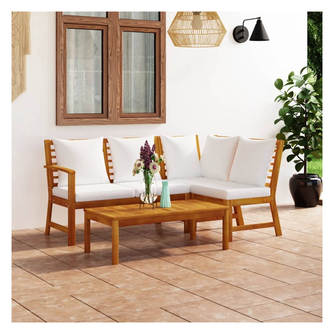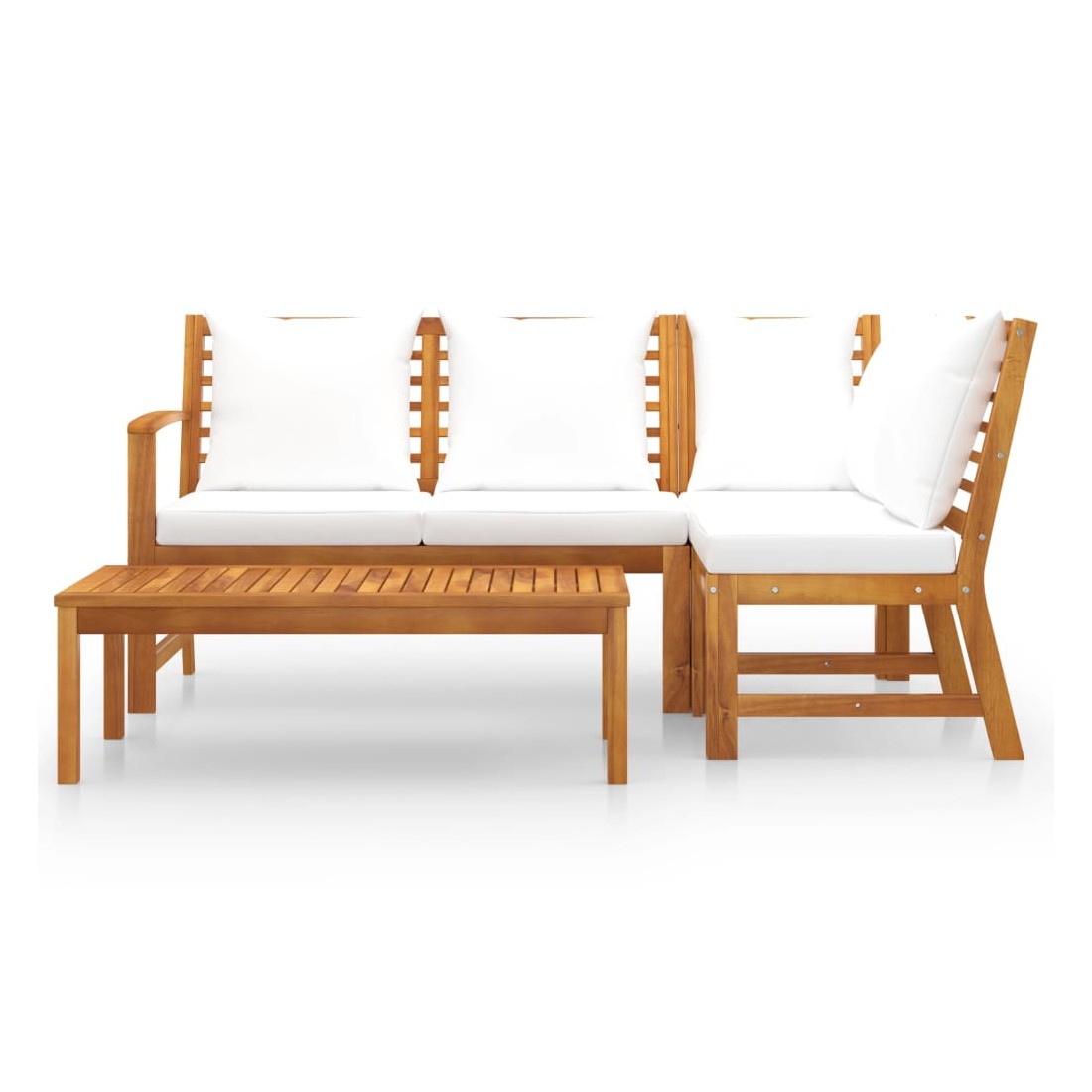 Salon de jardin 4 pcs avec coussin Crème Bois d'acacia solide