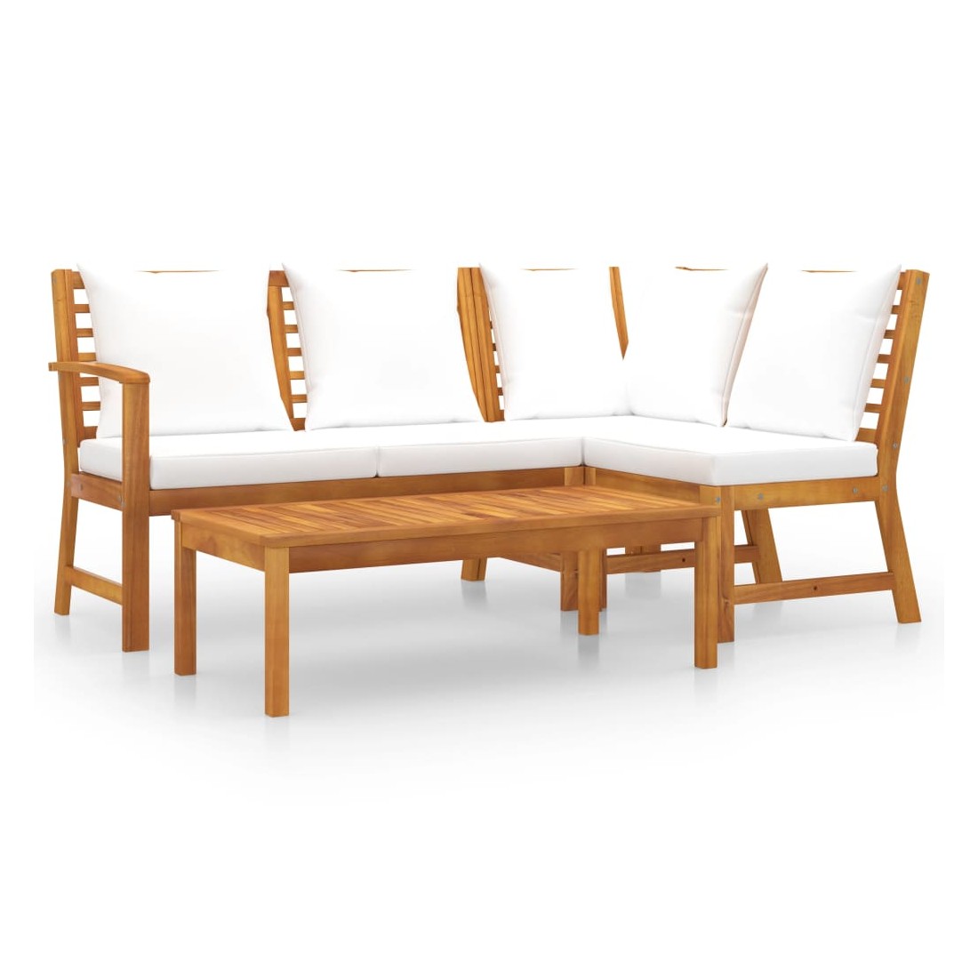 Ce mobilier de jardin en bois est une combinaison parfaite de style et de fonctionnalité. Avec cela dans votre jardin, vous pouvez passer du temps relaxant et apaisant avec votre famille et vos amis. Bois d’acacia massif : doté d'un cadre en bois d'acacia massif, l'ensemble de canapé est solide, robuste et durable; et sa finition à l'huile rend l'ensemble de canapé adapté à une utilisation en extérieur.Table basse pratique : une table basse au design unique à lattes est également incluse. Vous pouvez mettre quelques collations, boissons, tasses à thé, livre, etc, sur la table basse et garder tous les essentiels à portée de main.Coussins confortables : cet ensemble est livré avec des coussins d’assise et de dossier rembourrés très confortables. Les housses en polyester à faible entretien peuvent également être retirées et lavées.Conception modulaire : de plus, grâce à sa conception modulaire, toutes les pièces peuvent être disposées et personnalisées selon vos besoins.