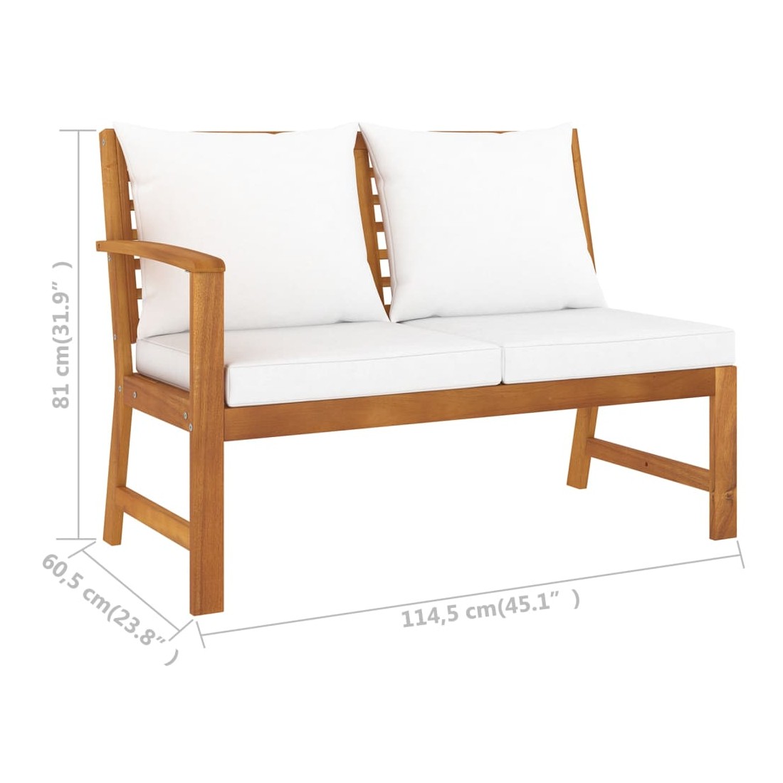 • Banc à 2 places avec dimensions des bras à droite : 114,5 x 60,5 x 81 cm (l x P x H)