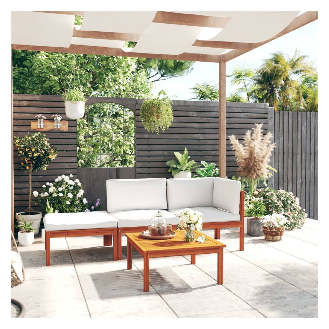 Ce salon de jardin avec dossiers en corde tressée sera idéal pour vous détendre et profiter du beau temps, faire une sieste ou discuter en famille ou entre amis. Avec son design intemporel, ce salon en bois apportera une touche de charme rustique à votre terrasse, jardin ou salon. Ce canapé de jardin est doté de dossiers en corde finement travaillés, ajoutant une touche sophistiquée à tout espace extérieur. Cet ensemble de jardin est fabriqué en bois d'acacia massif de haute qualité, un bois dur tropical résistant aux intempéries et très durable. Grâce à sa finition à l'huile, ce salon de jardin arbore une couleur chaleureuse et est facile à nettoyer et à entretenir. De plus, la livraison comprend des coussins d'assise et de dossier épais pour un confort optimal.