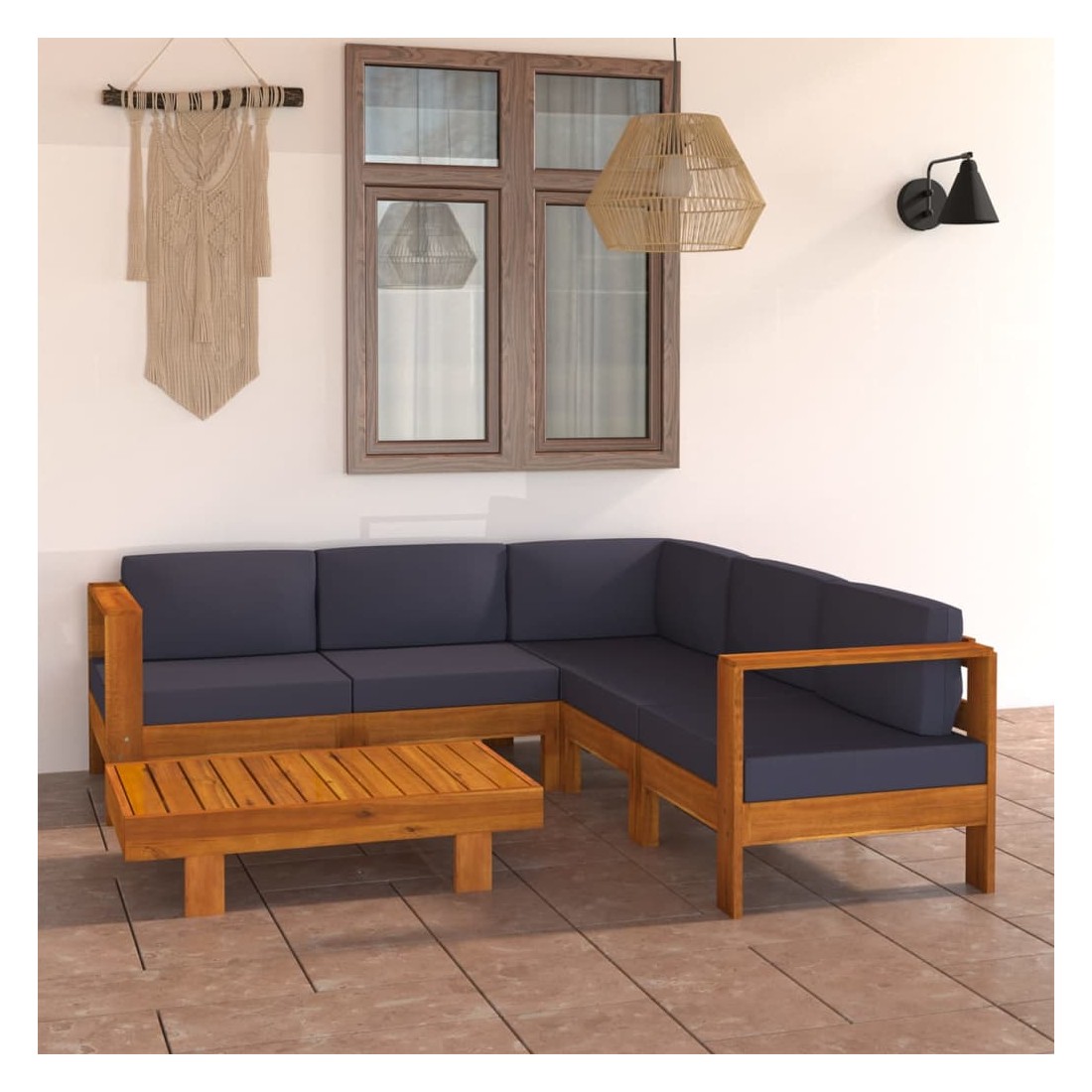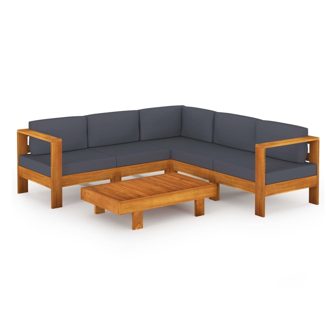 Salon de jardin 6 pcs avec coussins gris foncé Bois d'acacia