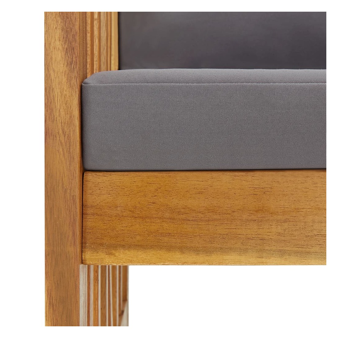 L'ensemble de salon de jardin en bois ajoute un look vintage et est spécialement conçu pour votre jardin, patio ou autre espace de vie extérieur ! L’ensemble de meubles d’extérieur est construit en bois d'acacia massif avec une finition à l’huile, ce qui le rend stable et durable. Les coussins épais d'assise et de dossier rendent l'ensemble doux pour vous y asseoir. Grâce au dessus de table en bois massif au design à lattes, la table basse vous offre de l’espace pour mettre vos collations, paniers de fruits, objets décoratifs, ainsi que d’autres essentiels. Le dossier légèrement incurvé et les accoudoirs ajoutent au confort d'assise du banc et de la chaise. Remarque importante : les couleurs et les grains varient d'une pièce à l'autre, rendant chaque pièce unique. La livraison est aléa