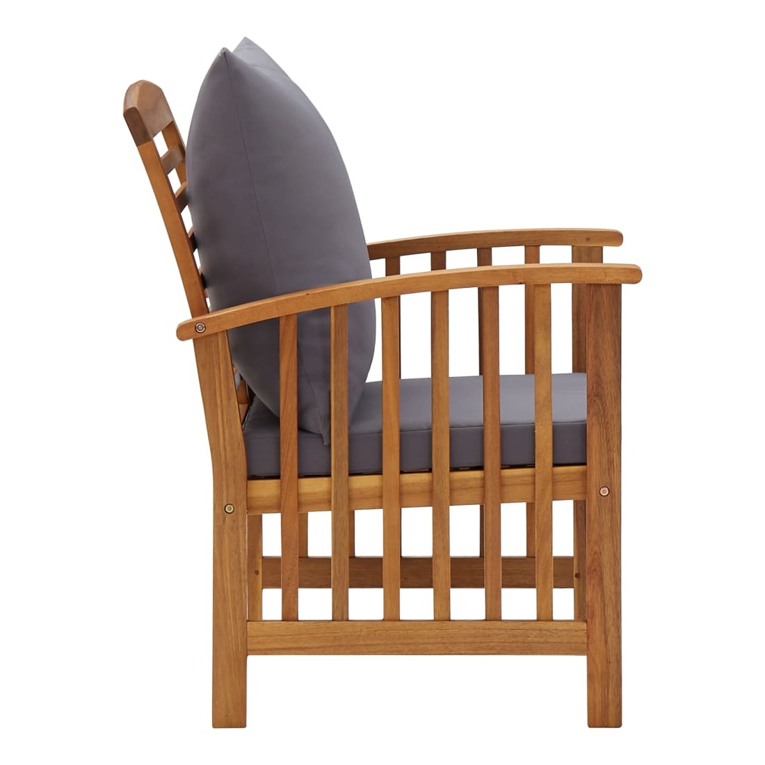 L'ensemble de salon de jardin en bois ajoute un look vintage et est spécialement conçu pour votre jardin, patio ou autre espace de vie extérieur ! L’ensemble de meubles d’extérieur est construit en bois d'acacia massif avec une finition à l’huile, ce qui le rend stable et durable. Les coussins épais d'assise et de dossier rendent l'ensemble doux pour vous y asseoir. Grâce au dessus de table en bois massif au design à lattes, la table basse vous offre de l’espace pour mettre vos collations, paniers de fruits, objets décoratifs, ainsi que d’autres essentiels. Le dossier légèrement incurvé et les accoudoirs ajoutent au confort d'assise de la chaise. Remarque importante : les couleurs et les grains varient d'une pièce à l'autre, rendant chaque pièce unique. La livraison est aléatoire, ce q