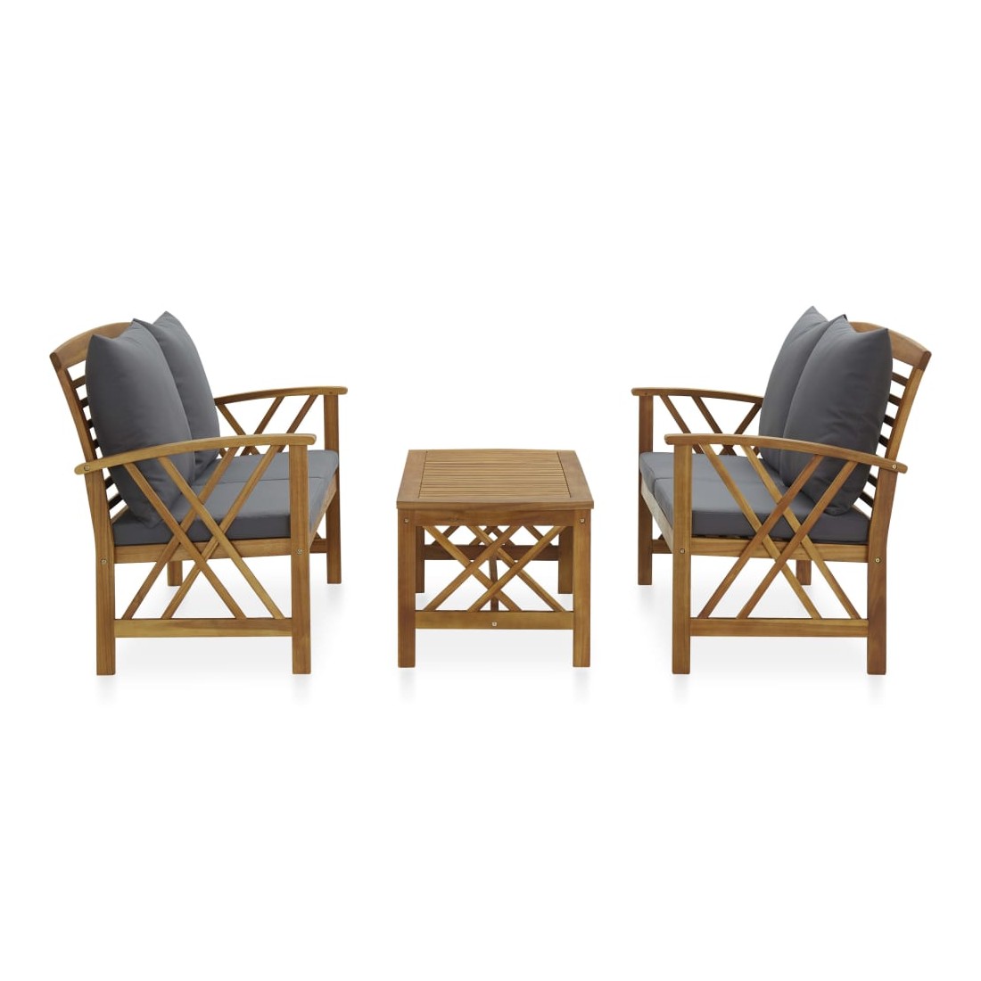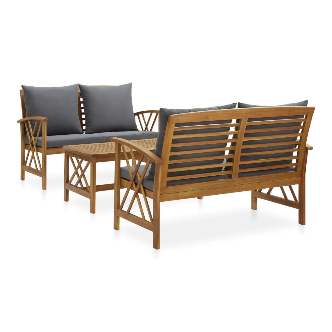 Salon de jardin 3 pcs avec coussins Bois d'acacia massif