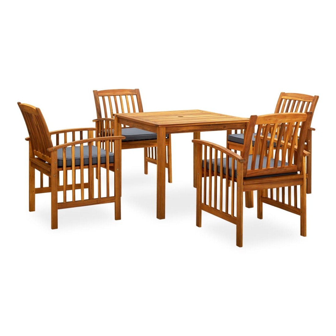 Ensemble à manger de jardin 5 pcs avec coussins Acacia solide
