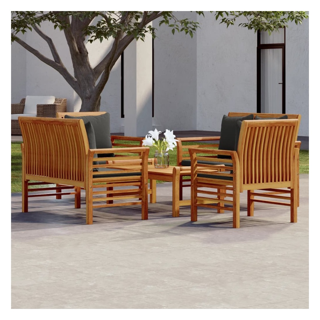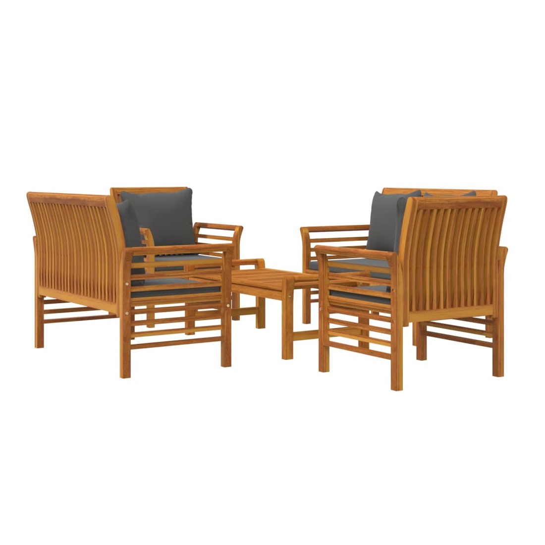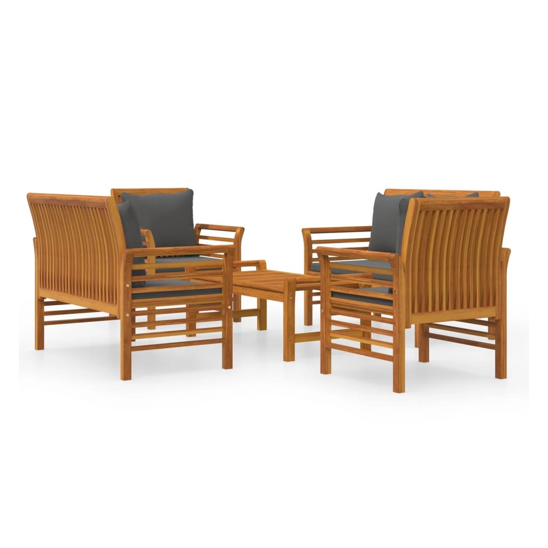Ce salon de jardin combine style et fonctionnalité et est un choix idéal pour vous détendre, profiter du beau temps, faire une sieste ou discuter avec votre famille ou vos amis. Matériau pratique : le bois d'acacia massif est un matériau naturel magnifique. Le bois d'acacia un bois dur tropical, qui est dense, robuste et durable.Confort supplémentaire : grâce à la tapisserie 100 % polyester et au rembourrage épais, les coussins inclus sont doux et offrent le plus grand confort.Table de loisirs idéale : avec un dessus robuste, la table est idéale pour garder la nourriture et les boissons à portée de main lorsque vous vous détendez en plein air. Remarque :Afin de prolonger la durée de vie de votre mobilier d'extérieur, nous vous recommandons de le protéger avec une housse imperméable.Chaque produit est livré avec un manuel de montage dans la boîte pour un montage facile.