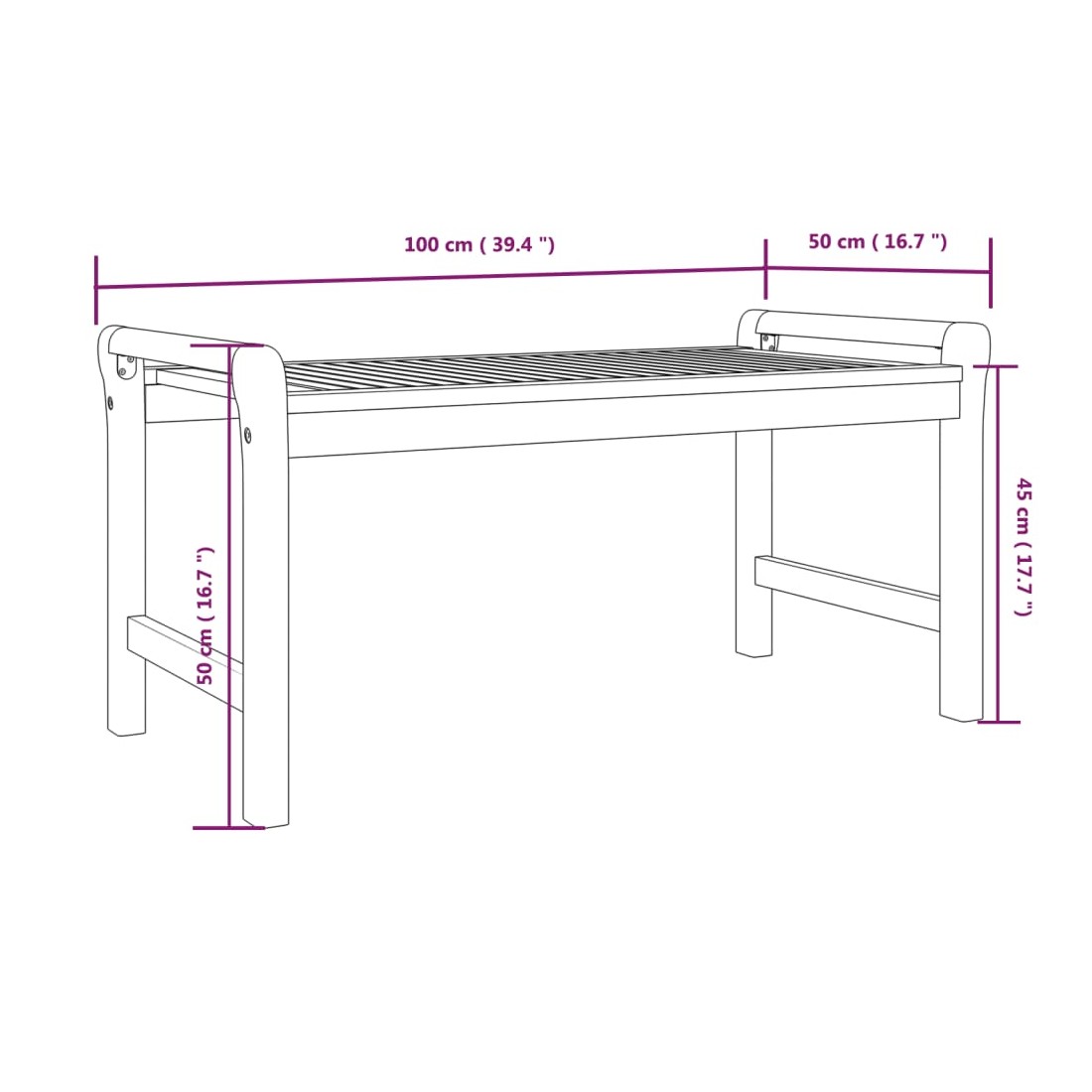• Dimensions de la table : 100 x 50 x 50 cm (l x P x H)