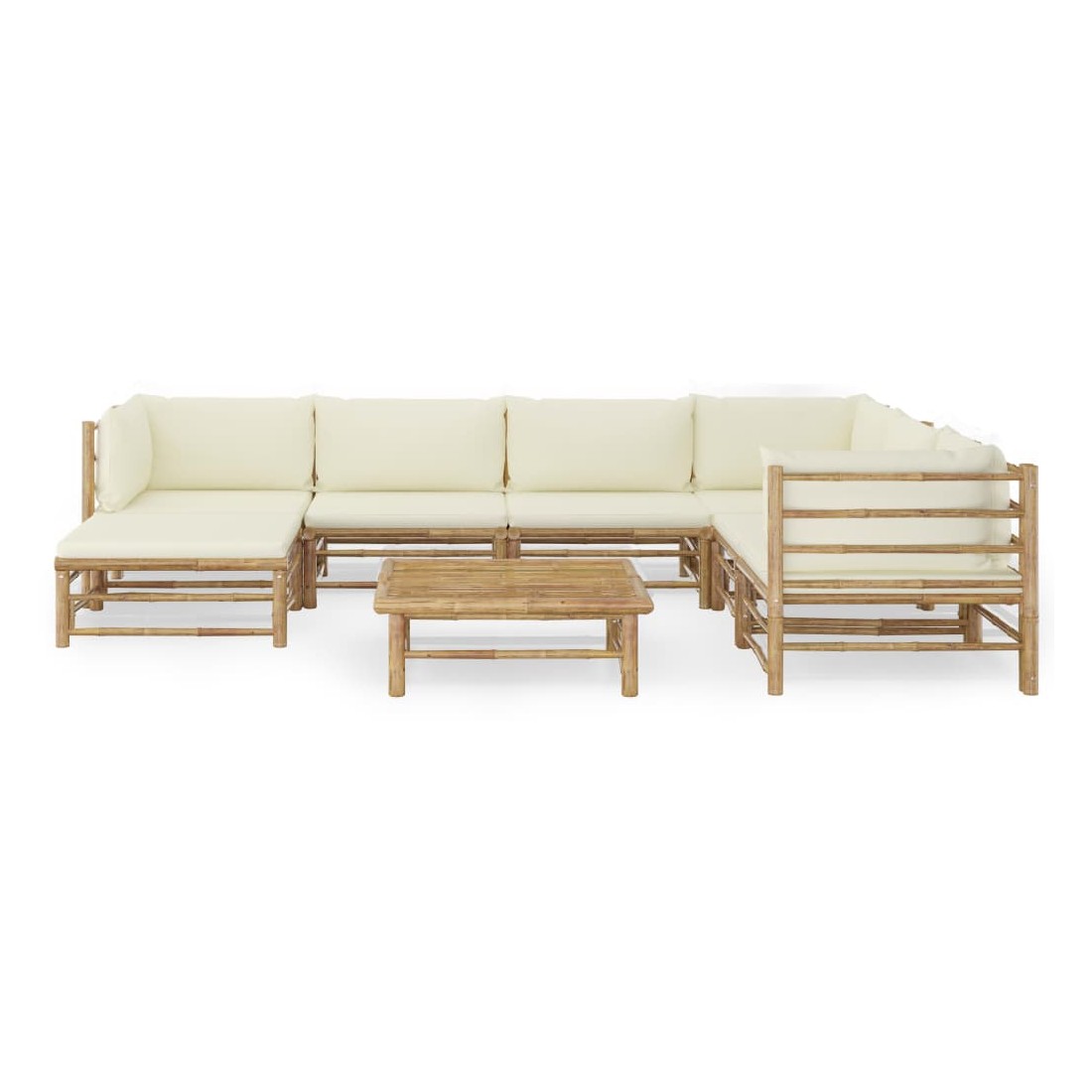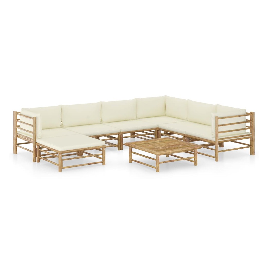 Salon de jardin 8 pcs avec coussins blanc crème bambou