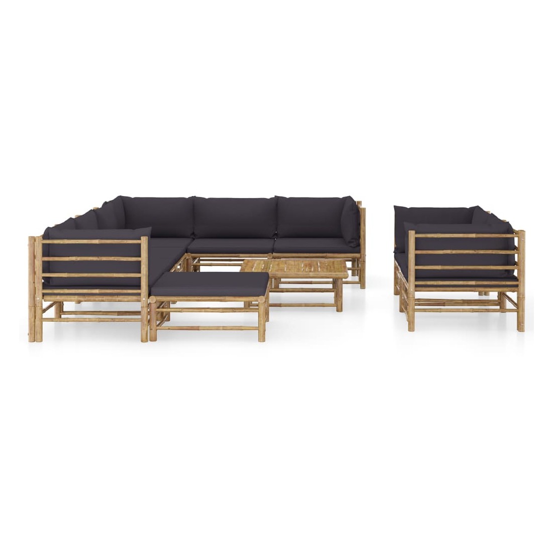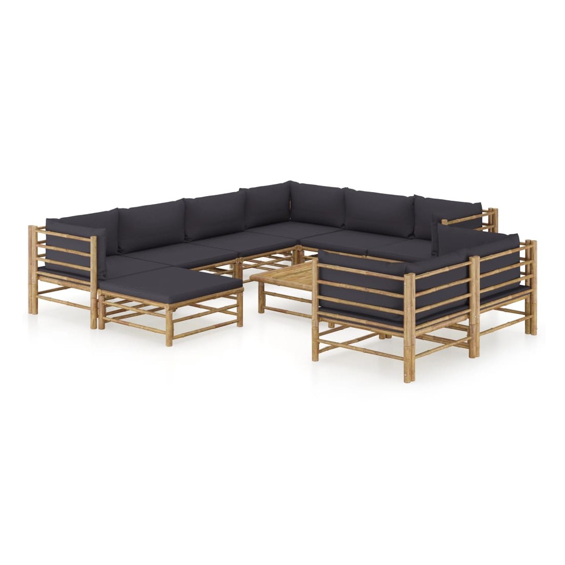 Salon de jardin 10 pcs avec coussins gris foncé bambou