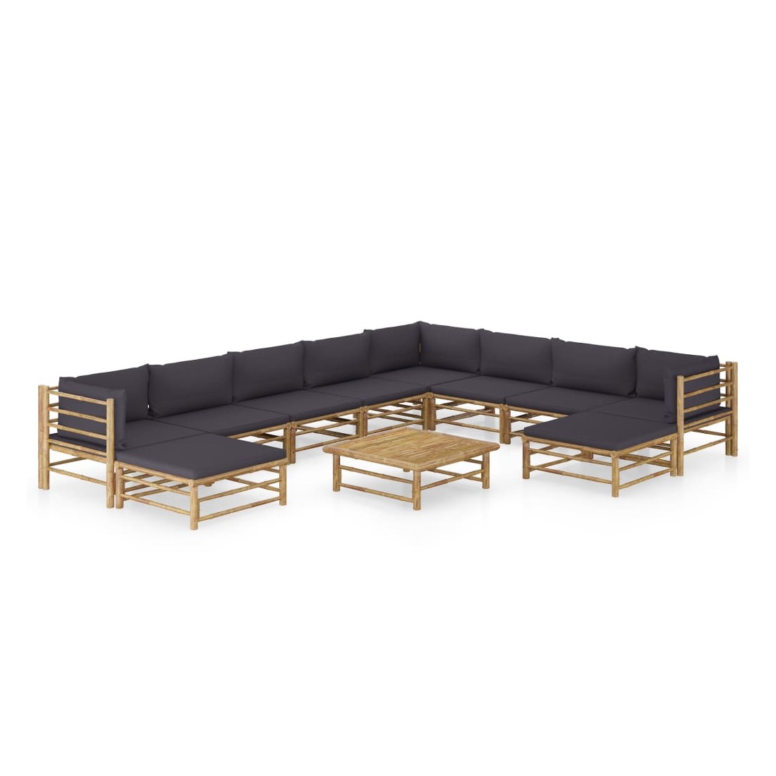 Salon de jardin 11 pcs avec coussins gris foncé bambou