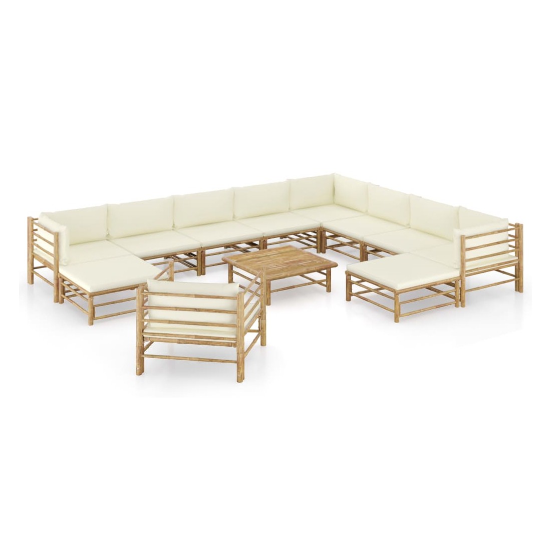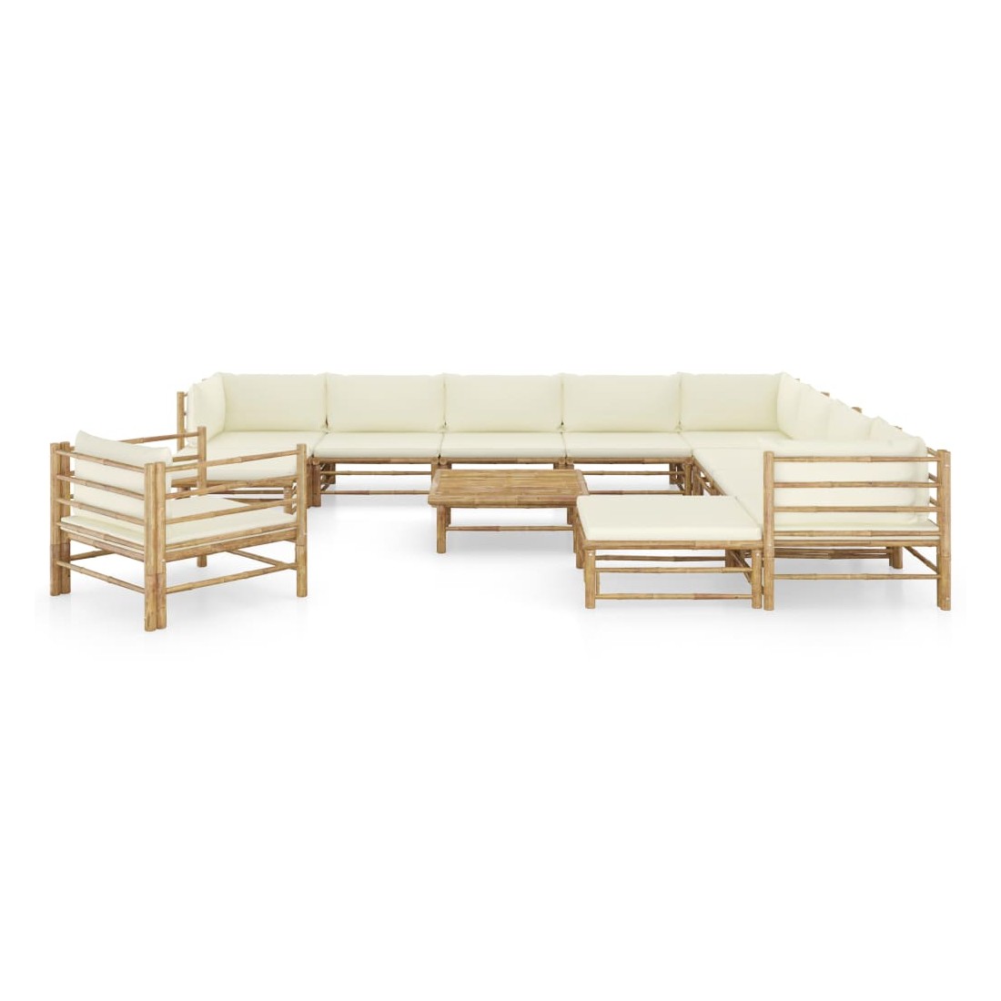Salon de jardin 12 pcs avec coussins blanc crème bambou
