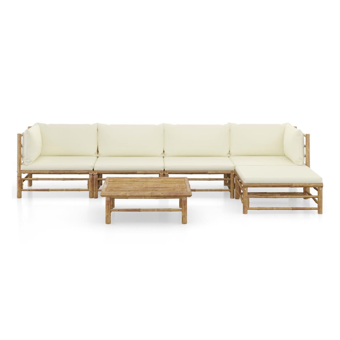 Salon de jardin 6 pcs avec coussins blanc crème bambou