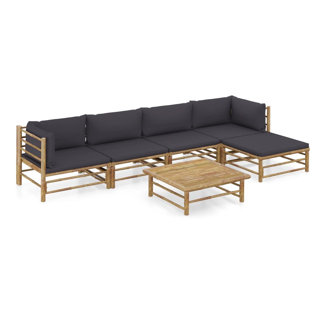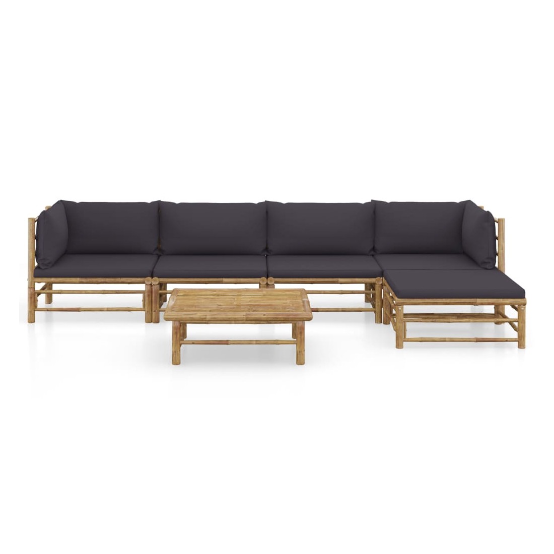 Salon de jardin 6 pcs avec coussins gris foncé bambou