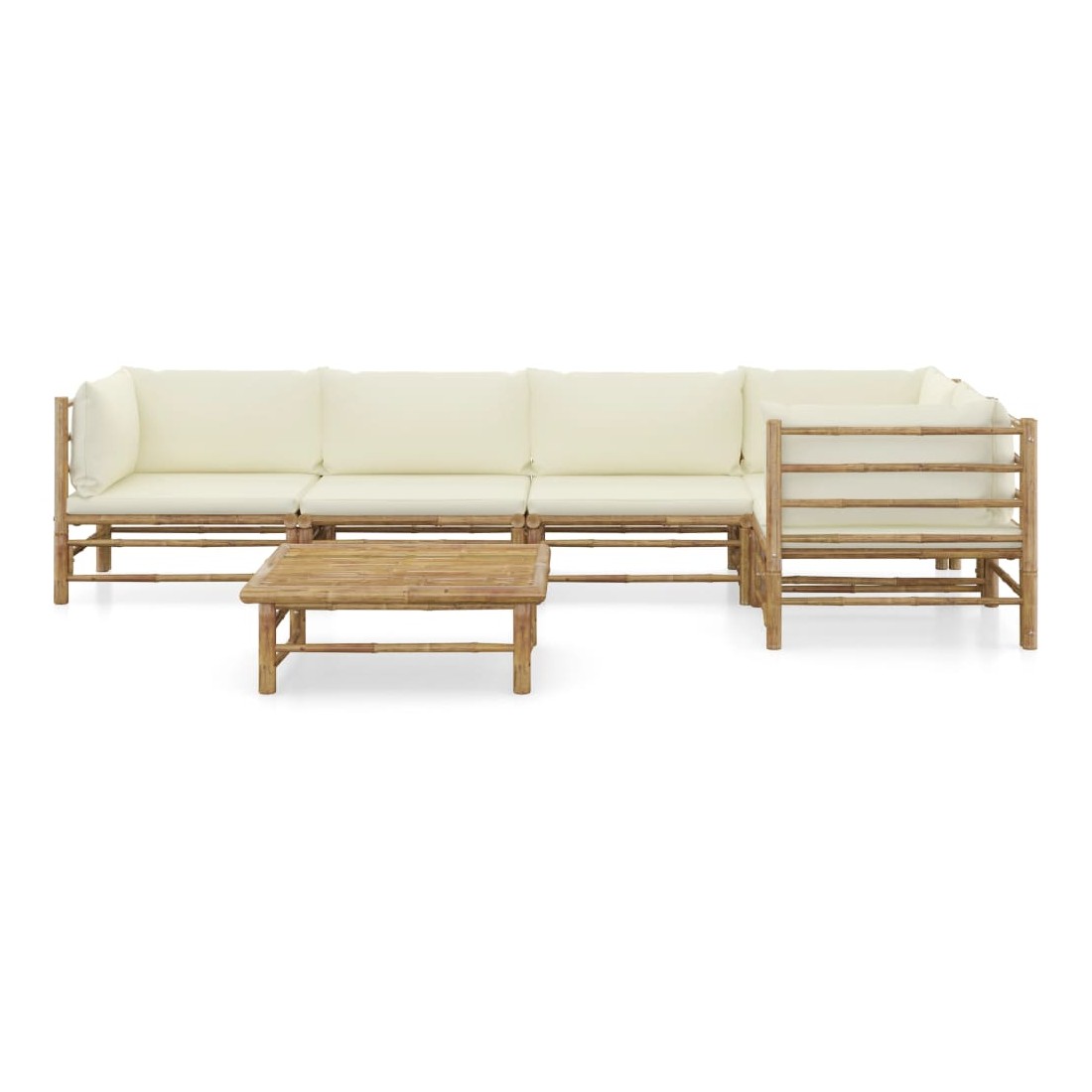 Salon de jardin 6 pcs avec coussins blanc crème bambou