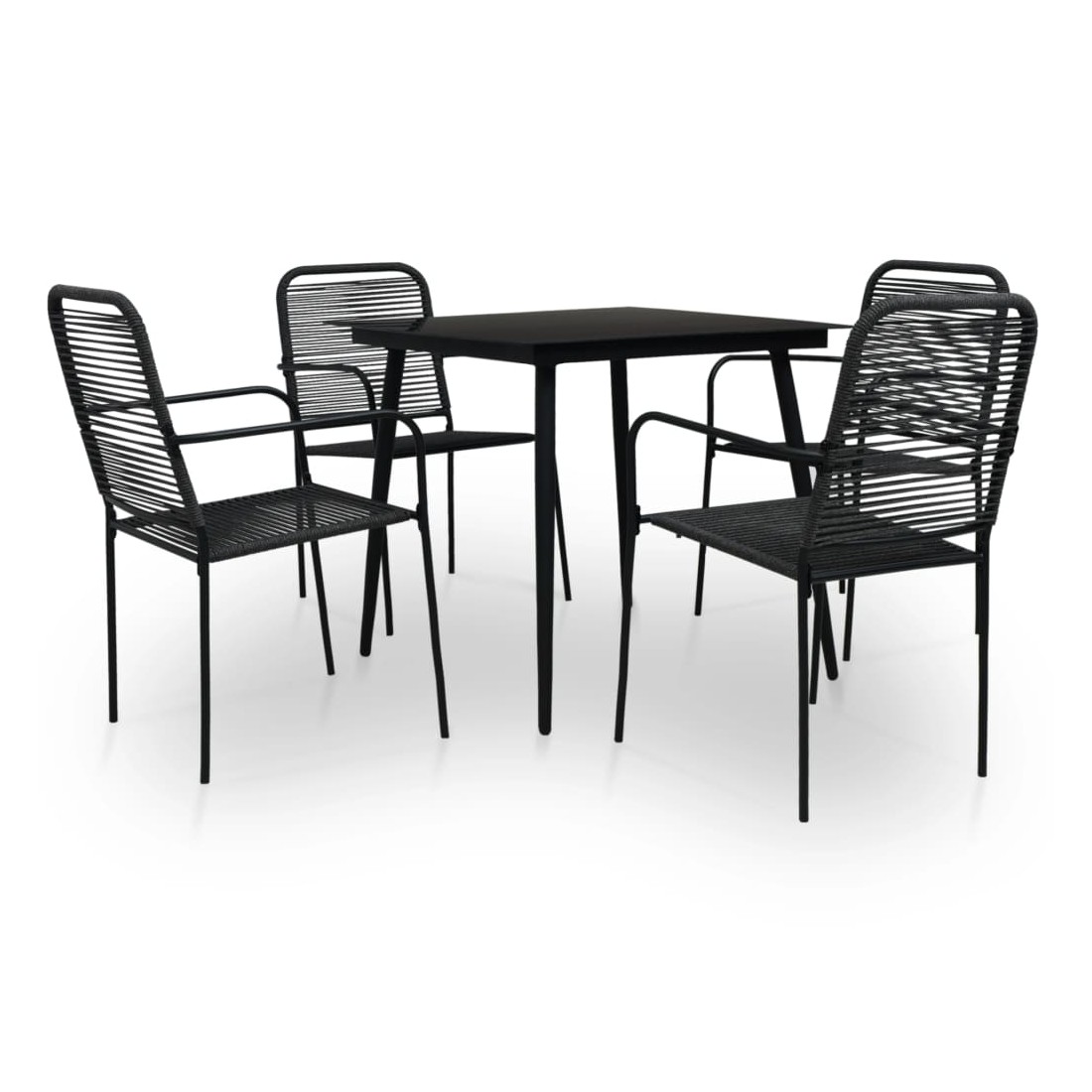 Cet ensemble de mobilier de salle à manger de 5 pièces au design élégant et aux lignes épurées sera un excellent choix pour votre jardin, patio, terrasse, ainsi que pour la cuisine et les salles à manger. L’élégance simple de cet ensemble de salle à manger rendra votre dîner quotidien spécial. Le dossier et l'assise sont en corde de coton torsadée, douce au toucher et robuste pour une utilisation à long terme. Cet ensemble de salle à manger de jardin comprend un cadre en acier enduit de poudre, ce qui rend la table et les chaises stables et durables. De plus, la table est dotée d'un dessus de table en verre trempé, facile à nettoyer.