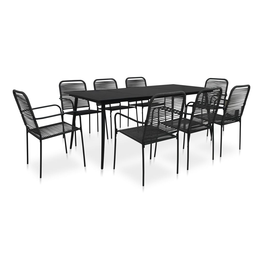 Ensemble à manger de jardin 9 pcs Corde en coton et acier Noir