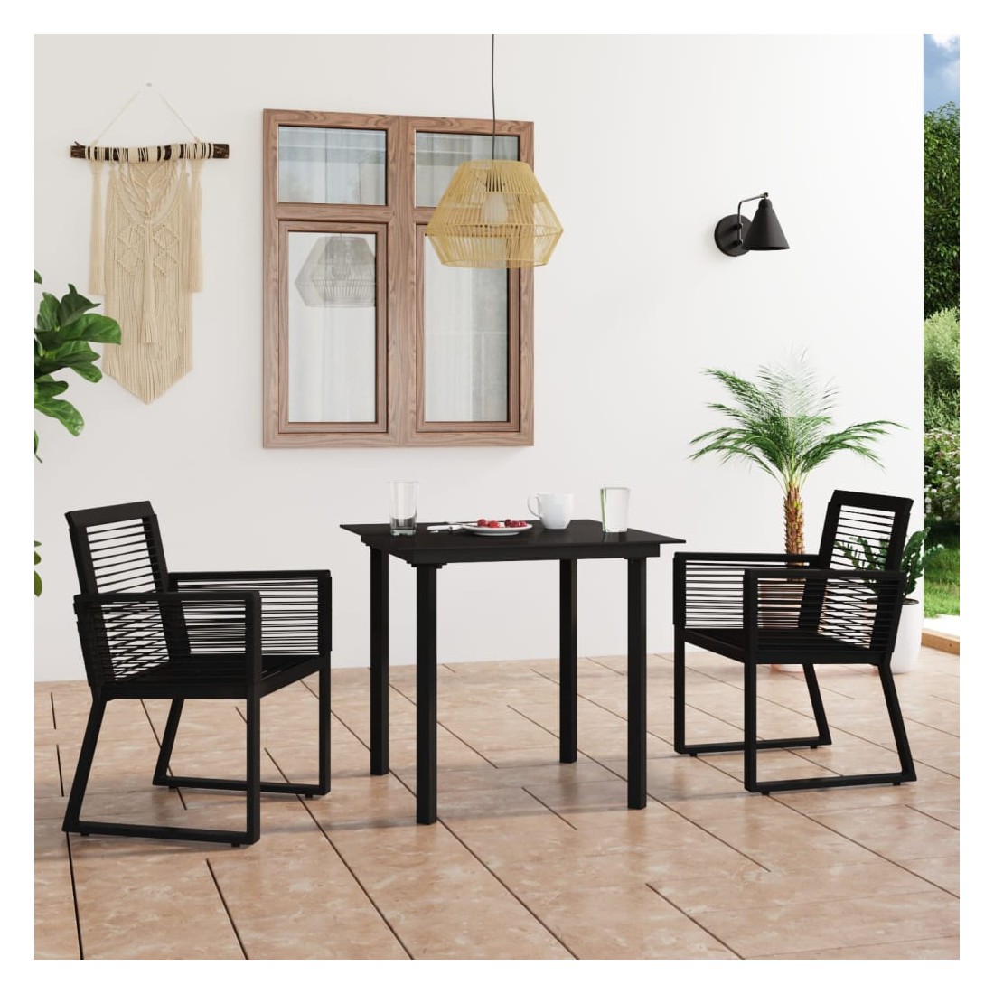 Ensemble à manger d'extérieur 3 pcs Rotin PVC Noir