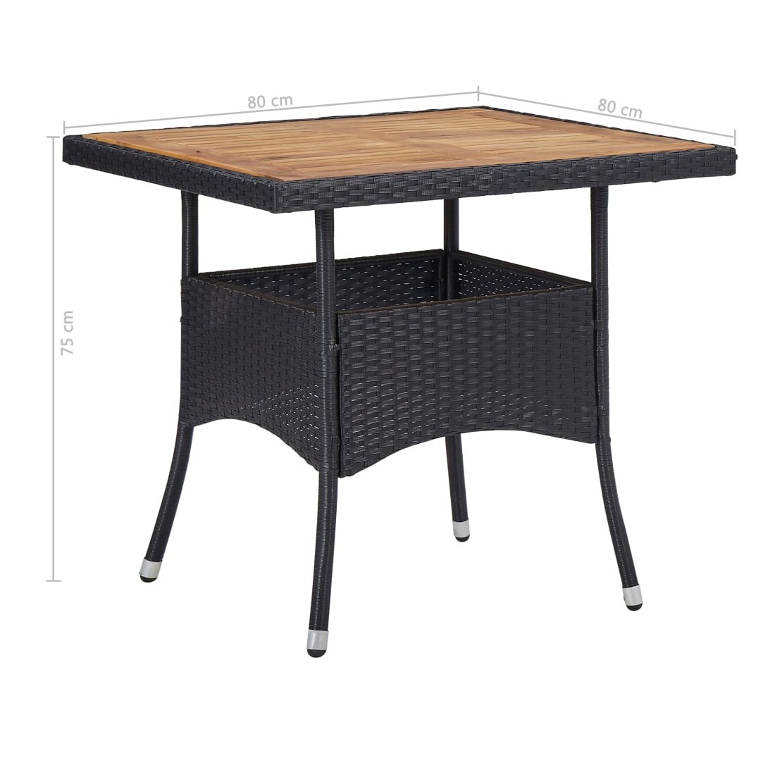 • Dimensions de la table : 80 x 80 x 75 cm (L x l x H)
