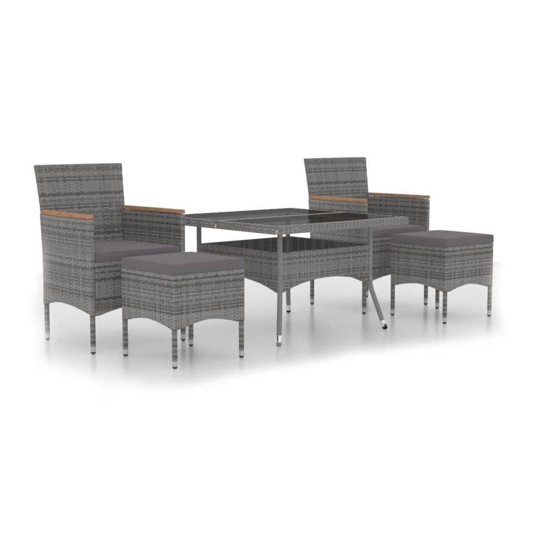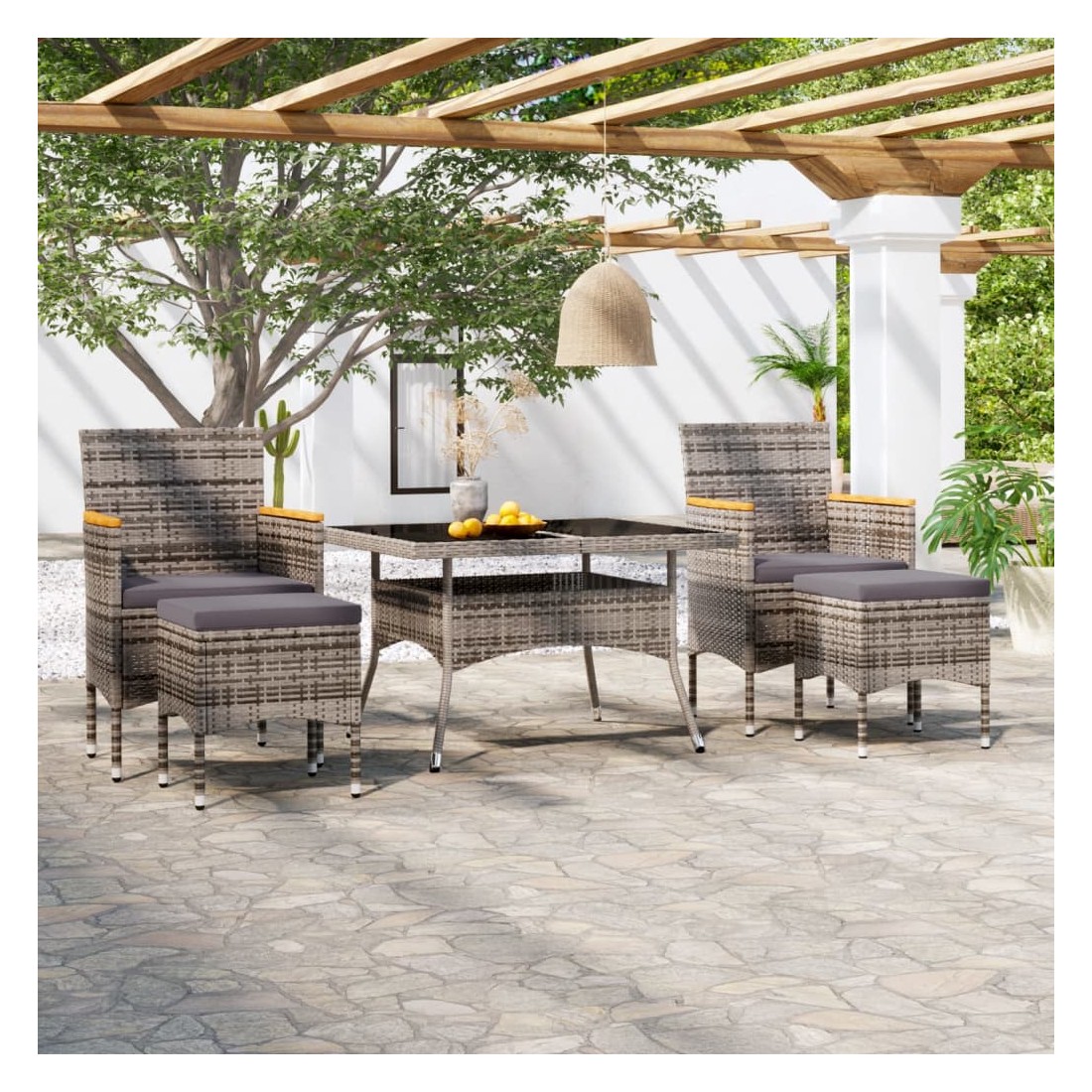 Cet ensemble élégant de salle à manger de jardin vous permet de passer des moments agréables et confortables avec votre famille et vos amis. Avec un cadre en acier enduit de poudre recouvert de résine tressée résistante aux intempéries avec protection UV, la table et les chaises sont durables et stables. Conçues avec un dossier et des accoudoirs incurvés, les chaises vous offrent du confort. Les coussins sont inclus pour plus de confort et la housse à fermeture éclair est amovible pour un lavage facile. Le dessus de table est en verre trempé renforcé avec un support résistant, facile à nettoyer et à entretenir. Les deux repose-pieds vous offrent également des places d'assise supplémentaires. De plus, la construction légère rend chaque pièce facile à déplacer, à réorganiser et à transporter. Remarque : afin de prolonger la durée de vie des meubles d'extérieur, nous vous recommandons de les protéger avec une housse imperméable.
