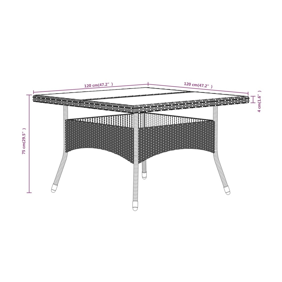 - Dimensions de la table : 120 x 120 x 75 cm (l x P x H)