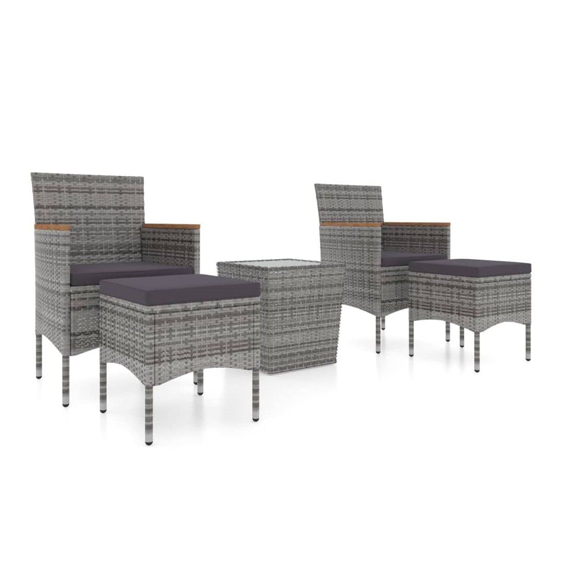 Ensemble de bistro jardin 5pcs Résine tressée verre trempé Gris