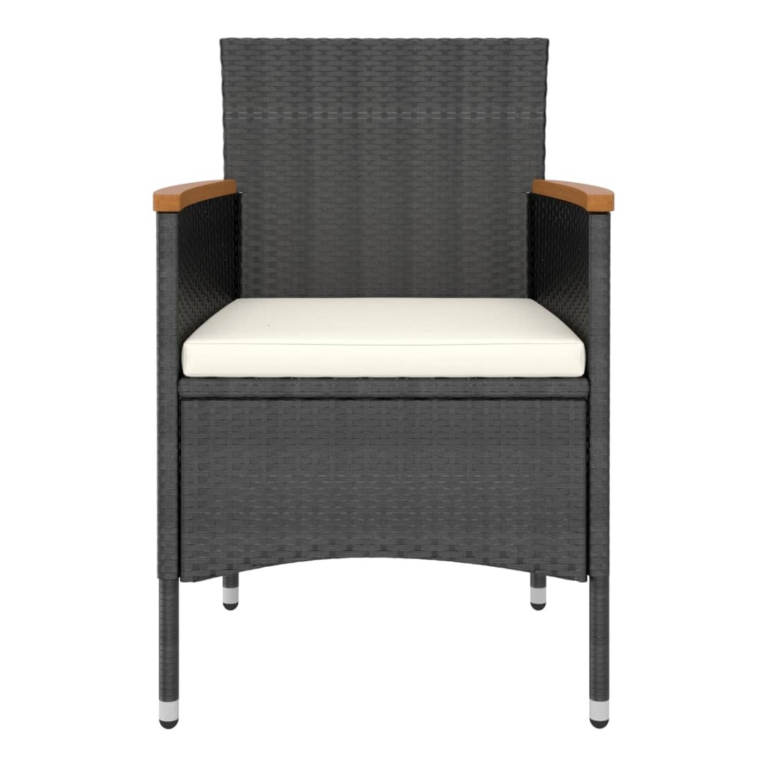 Cet ensemble élégant de bistro de jardin vous permet de passer des moments agréables et confortables avec votre famille et vos amis. Avec un cadre en acier enduit de poudre recouvert de résine tressée résistante aux intempéries avec protection UV, la table et les chaises sont durables et stables. Conçues avec un dossier et des accoudoirs incurvés, les chaises vous offrent du confort. Les coussins sont inclus pour plus de confort et la housse à fermeture éclair est amovible pour un lavage facile. Le dessus de table est fabriqué en bois d'acacia massif avec un support résistant, facile à nettoyer et à entretenir. Les deux repose-pieds vous offrent également des places d'assise supplémentaires. De plus, la construction légère rend chaque pièce facile à déplacer, à réorganiser et à transporter. Remarque : afin de prolonger la durée de vie des meubles d'extérieur, nous vous recommandons de les protéger avec une housse imperméable.