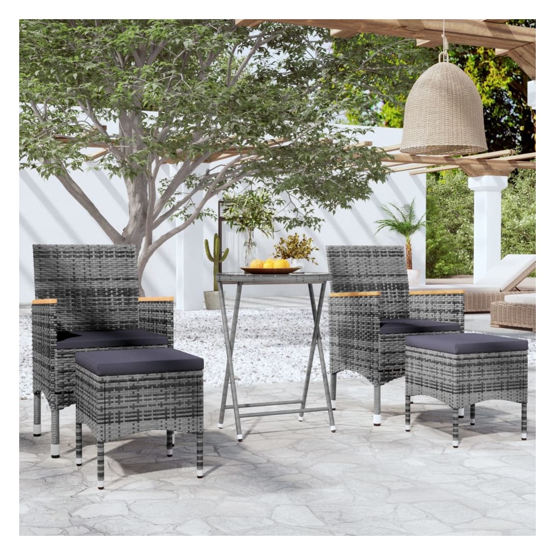 Ensemble de bistro jardin 5pcs Résine tressée verre trempé Gris