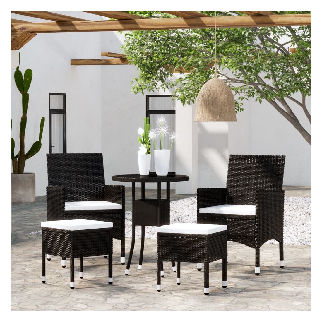- Matériau : résine tressée, acier enduit de poudre, verre trempé