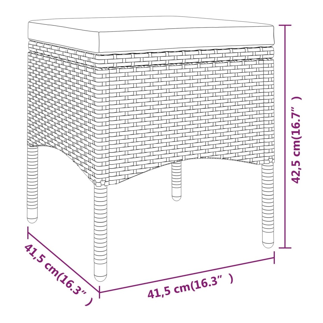 - Dimensions du tabouret : 41,5 x 41,5 x 42,5 cm (l x P x H)