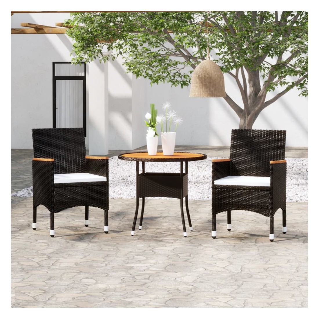 Ensemble à manger de jardin 3 pcs Résine tressée Noir
