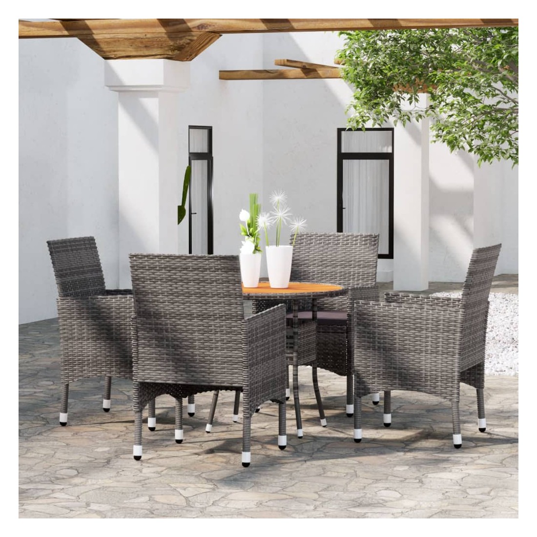 Ensemble à manger de jardin 5 pcs Résine tressée Gris