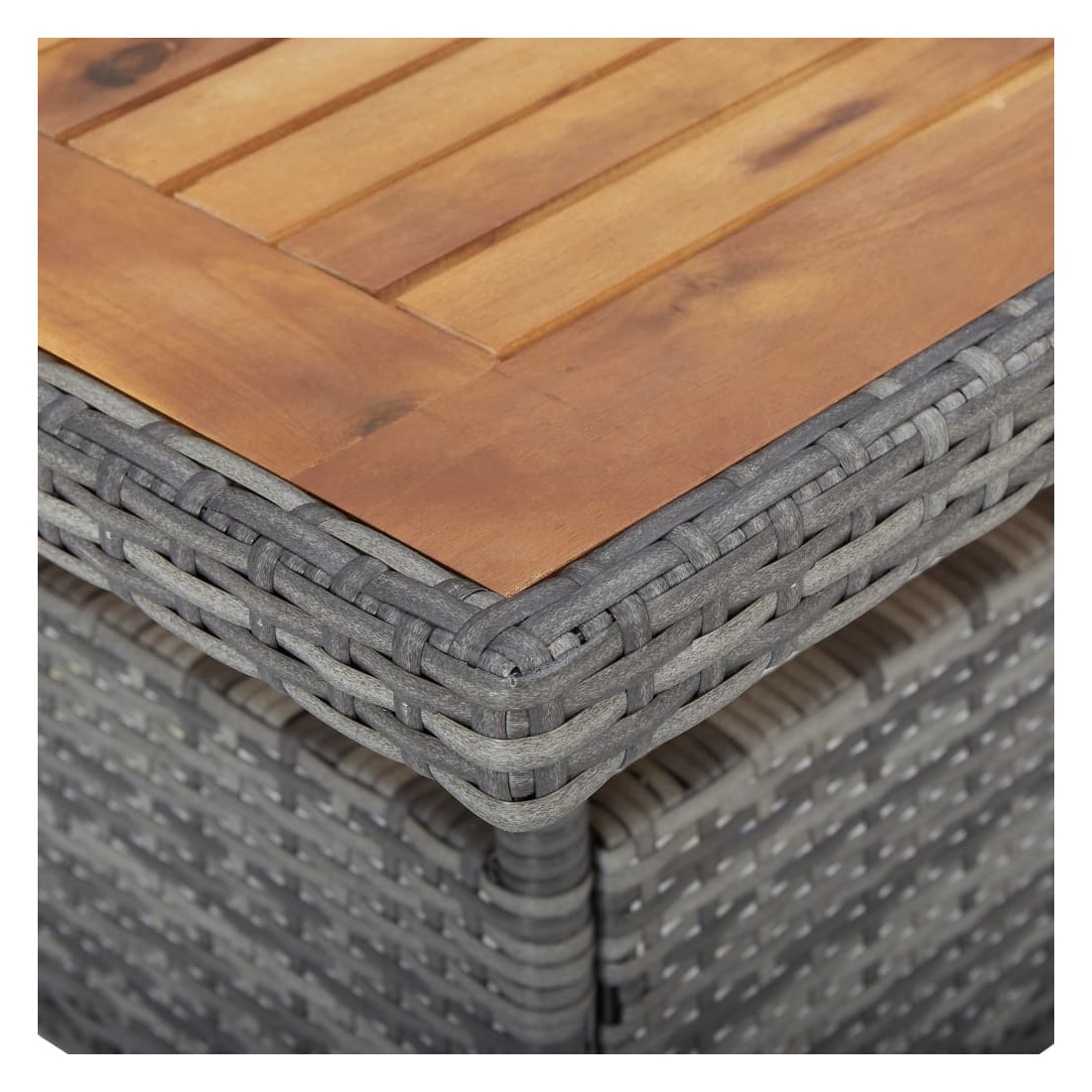 Cet élégant ensemble de salle à manger de jardin est destiné à être le point de mire de votre jardin ou patio ! C’est un excellent choix pour manger en plein air ou vous détendre dans les espaces extérieurs ! Les cadres en acier enduit de poudre rendent la table et les chaises solides. Grâce à leurs constructions légères, tous les articles sont faciles à déplacer. La résine tressée résistante aux intempéries et le dessus en bois d’acacia avec une finition à l'huile sont faciles à nettoyer avec un chiffon humide. Les fauteuils sont conçus avec des dossiers incurvés et des accoudoirs pour un confort maximal. Les coussins sont inclus pour un soutien supplémentaire et la housse à fermeture éclair est amovible pour faciliter le lavage.