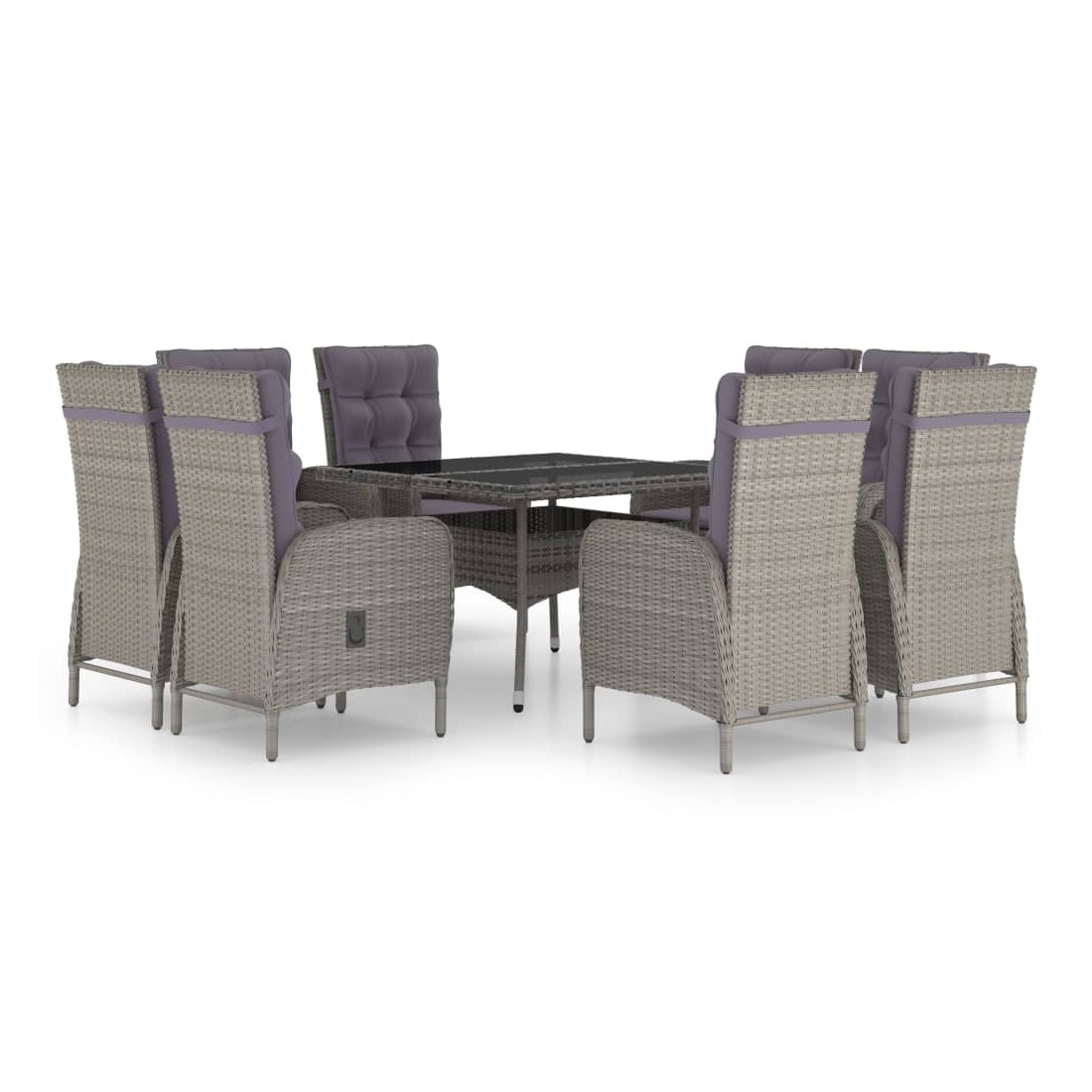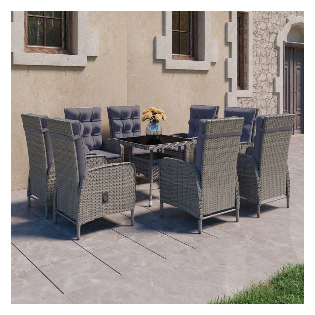 Ensemble à manger de jardin 9 pcs Résine tressée et verre Gris