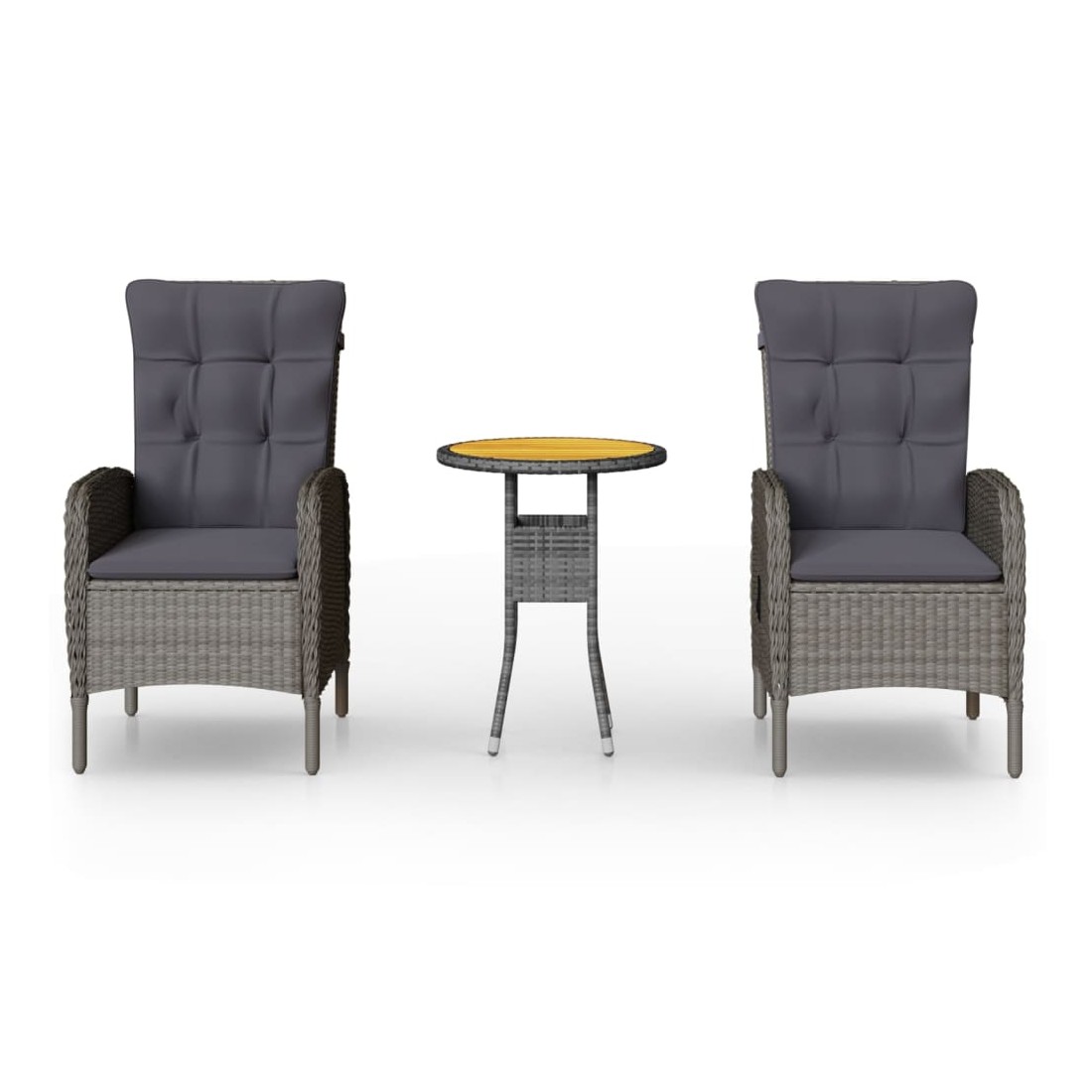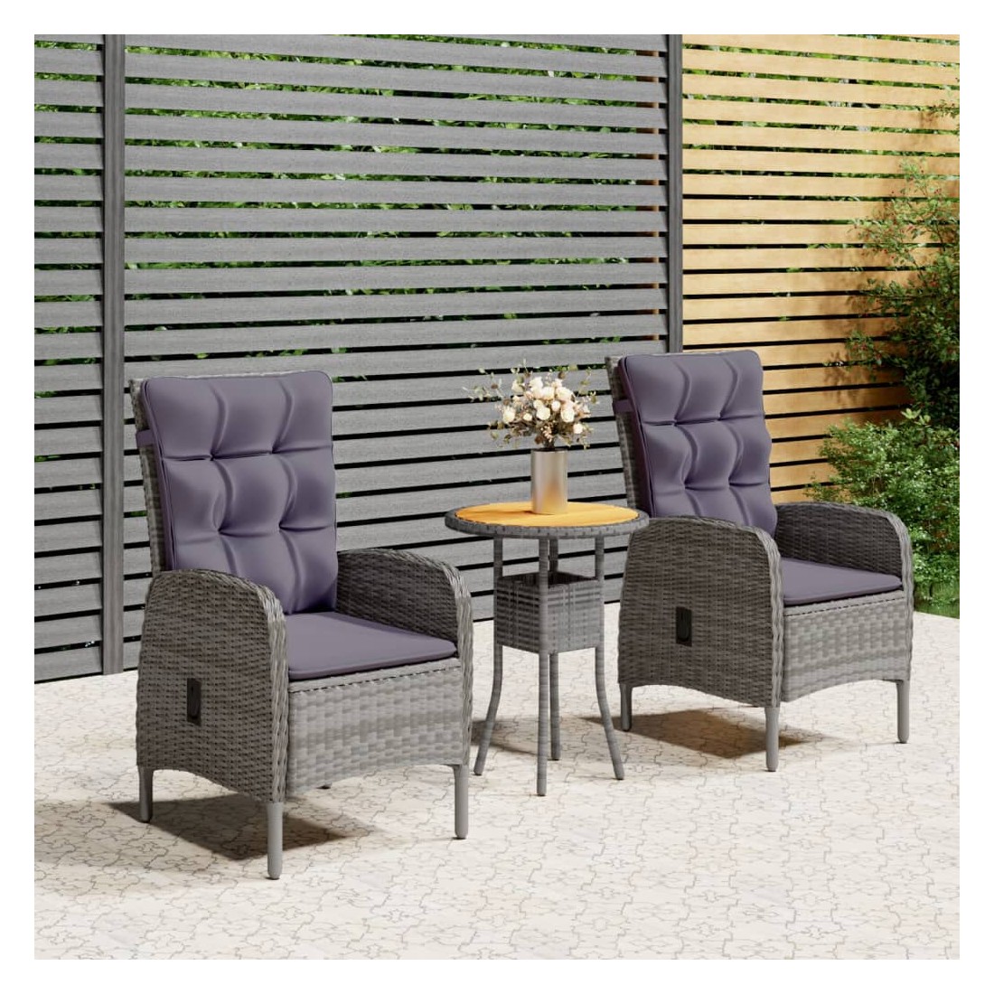 Cet élégant ensemble de bistro de jardin en résine tressée est conçu pour être le point de mire de votre jardin ou de votre patio. C'est un excellent choix pour les repas en plein air ou pour vous détendre dans l'espace extérieur ! Matériau de qualité supérieure : cadre en acier robuste enveloppé de résine tressée tissée à la main résistante aux intempéries, cet ensemble de patio d'extérieur est résistant à la rouille et à la moisissure, ce qui peut fournir des années de détente de qualité.Structure stable et solide : les cadres en acier garantissent la solidité et la stabilité.Chaises confortables : conçue avec un dossier et des accoudoirs incurvés, la chaise inclinable de jardin a une forme plus ergonomique pour un confort maximal. Des coussins sont inclus pour un soutien supplémentaire et la housse avec fermeture éclair est amovible pour un lavage facile.Mécanisme de levage à gaz : grâce au mécanisme de levage à gaz, le dossier du fauteuil de jardin est réglable pour s'adapter à vos positions. En touchant le bouton sur le côté, le dossier peut s'incliner, pour une position confortable.Construction légère : grâce à la construction légère, la table de bistrot et les chaises en résine tressée sont faciles à déplacer. Remarque :Afin de prolonger la durée de vie de votre mobilier d'extérieur, nous vous recommandons de le protéger avec une housse imperméable.