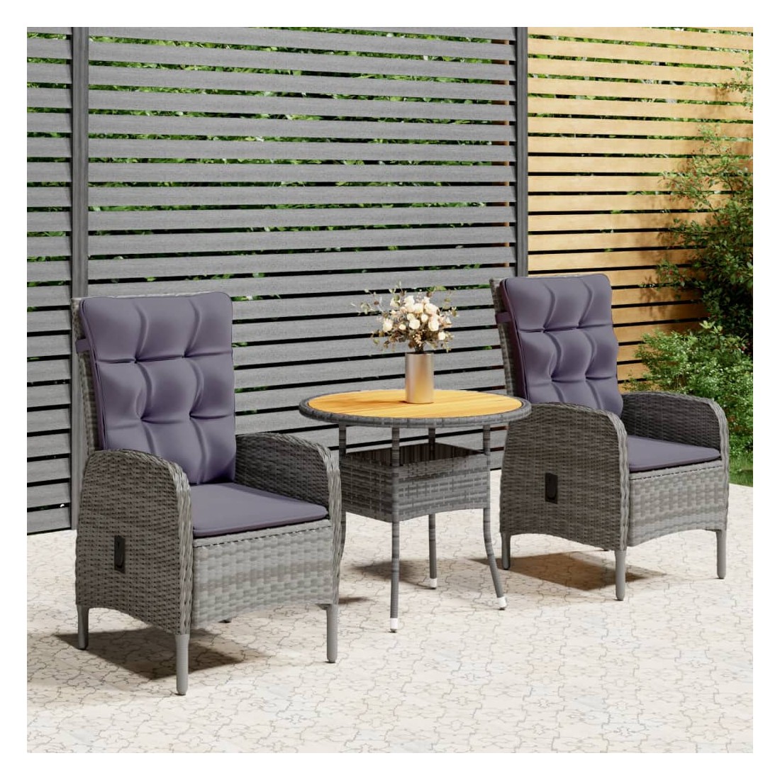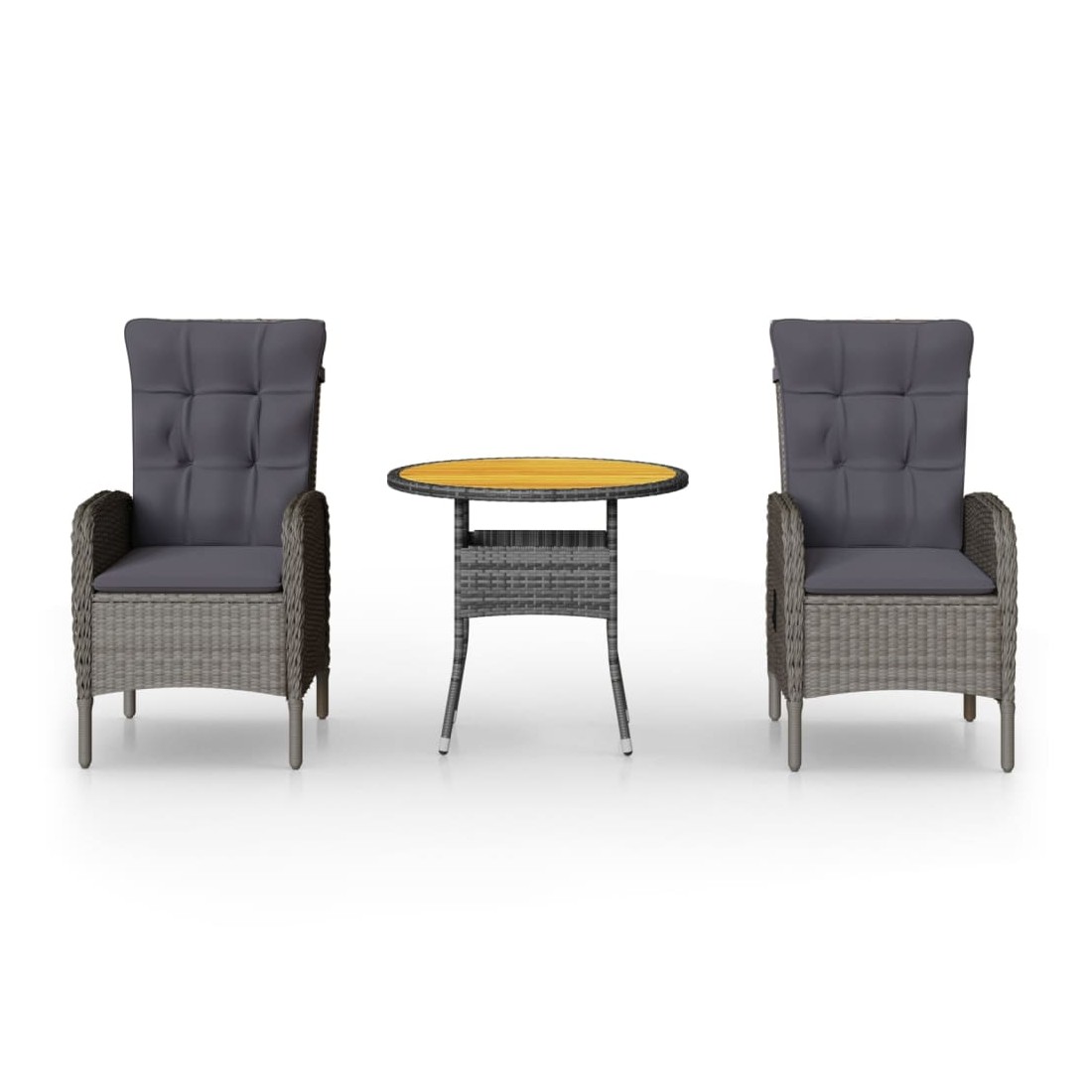 Ensemble de bistro de jardin 3 pcs Résine tressée Gris
