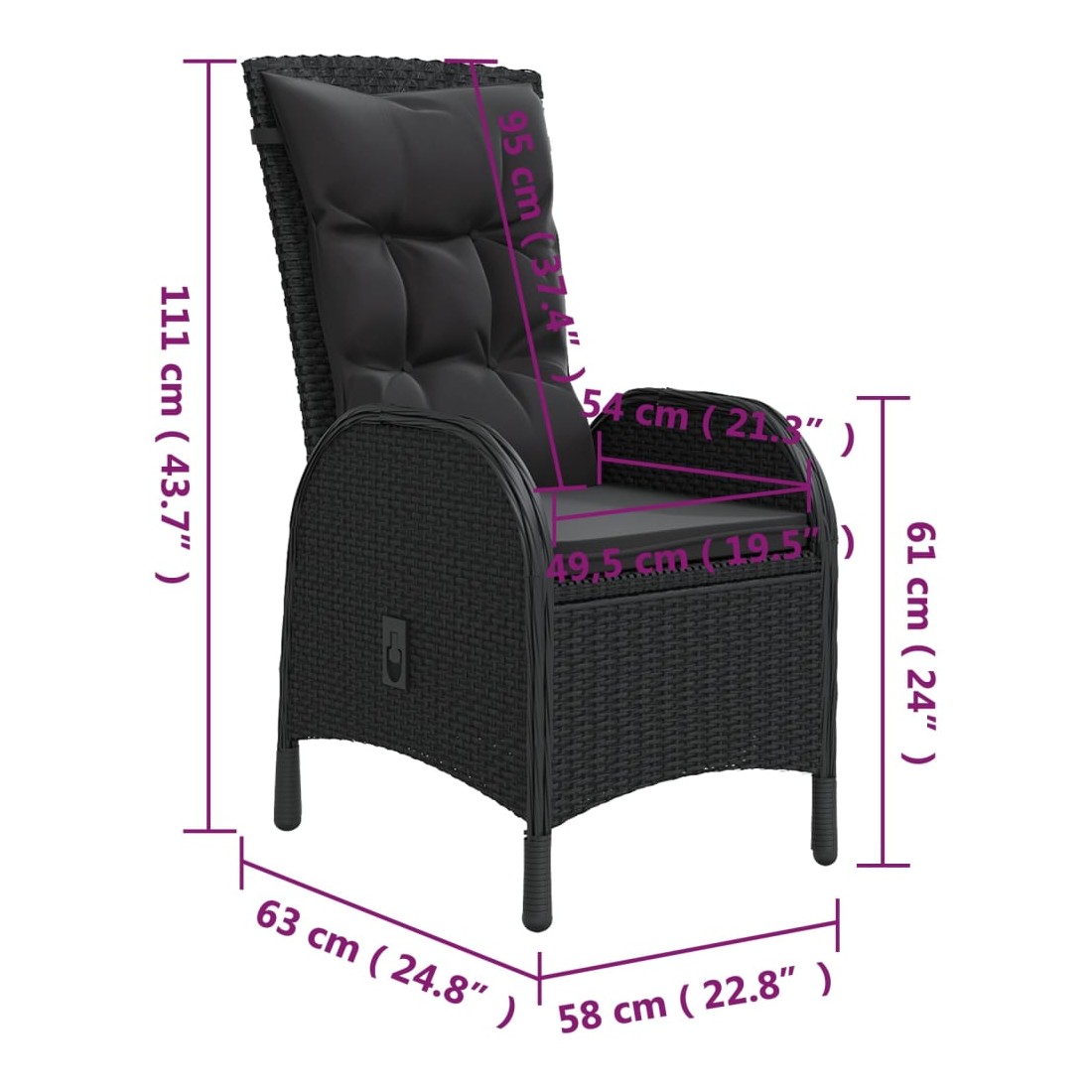 - Dimensions de la chaise : 58 x 63 x 111 cm (l x P x H)