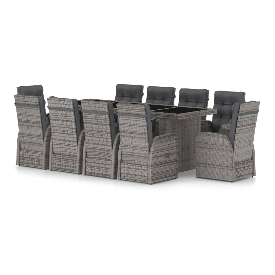 Salon de jardin 11 pcs avec coussins Résine tressée Gris