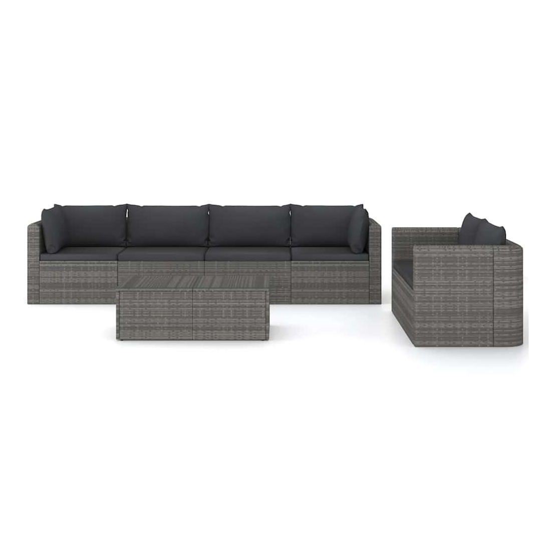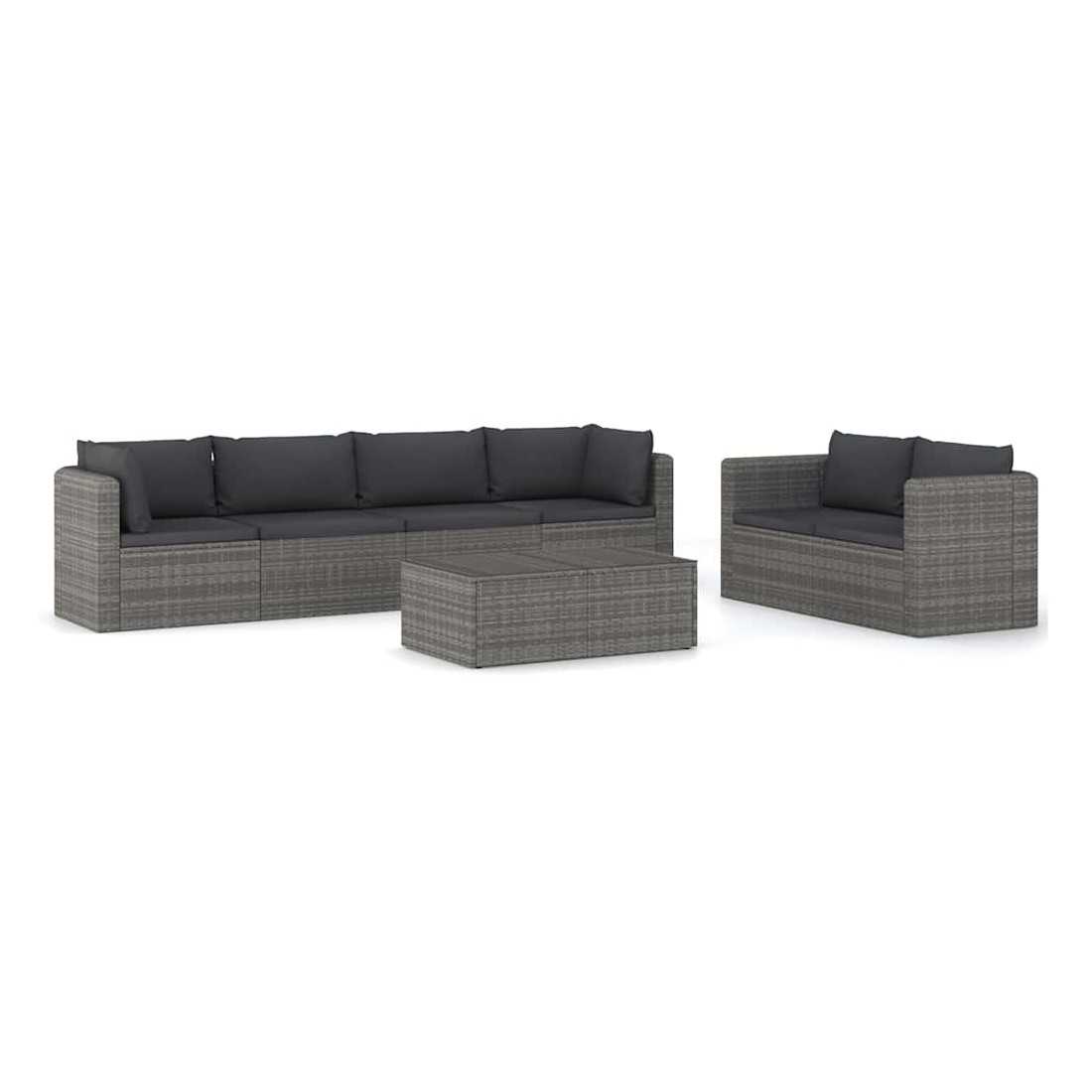 Salon de jardin 7 pcs avec coussins résine tressée gris