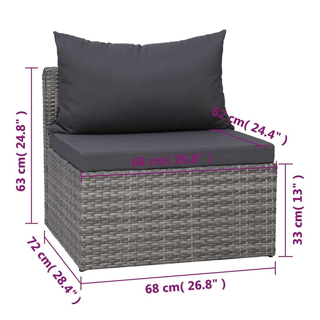 - Hauteur du siège à partir du sol sans le coussin : 33 cm