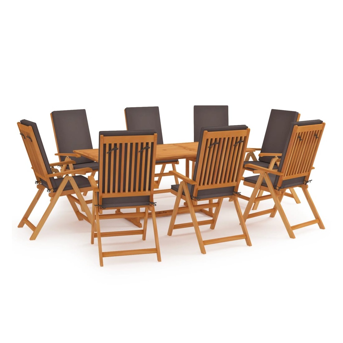 Ensemble à manger de jardin 9pcs coussins Bois teck massif Gris