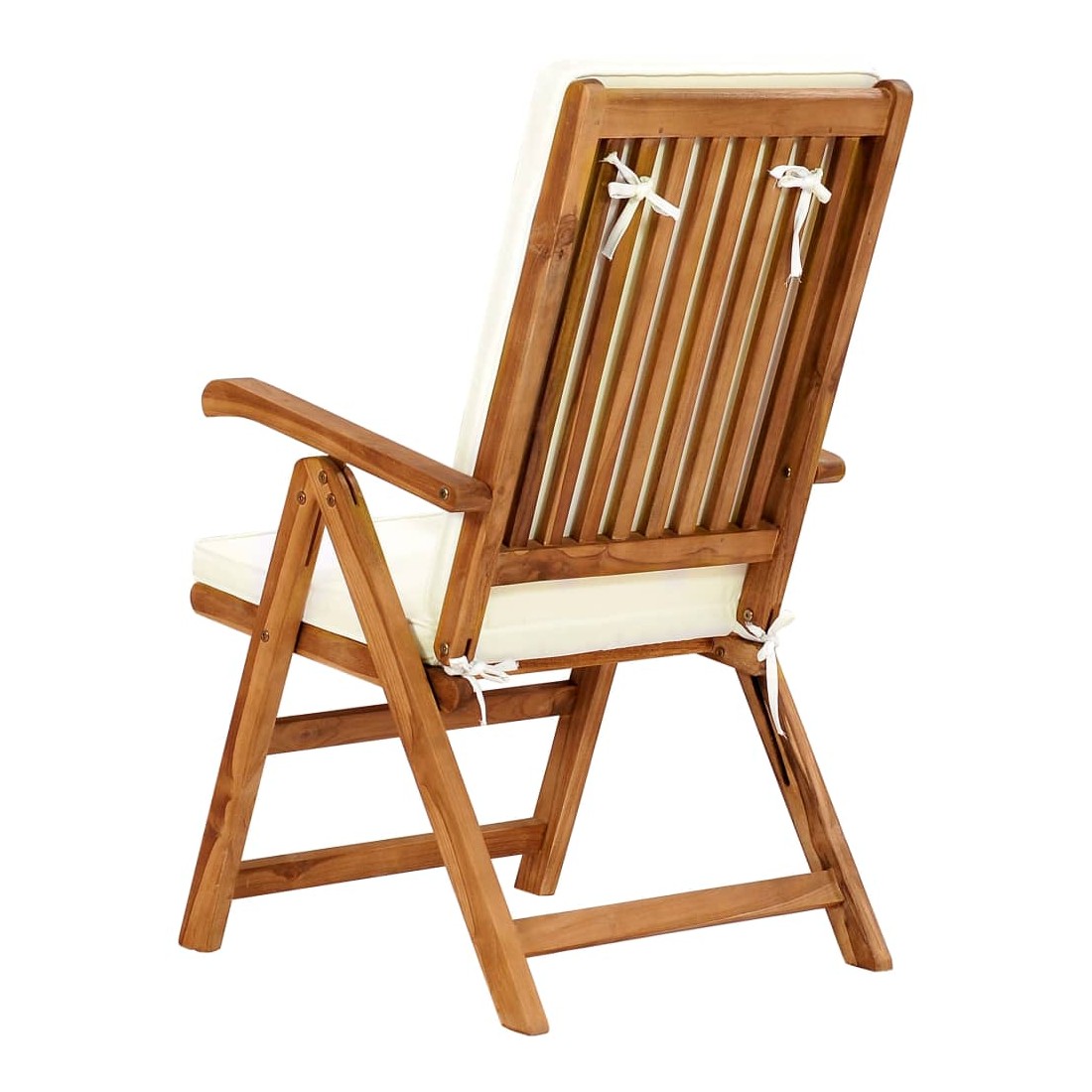 Cet ensemble de jardin en bois est parfait pour vos repas ou pour vous détendre dans le jardin ou sur le patio. Il est également idéal pour une utilisation à l'intérieur. Fabriquée en bois dur de teck extrêmement durable, cette pièce de meuble en teck a été chevronnée, séchée au four puis finement poncée pour lui donner un aspect très lisse. Le bois de teck est connu pour sa résistance exceptionnelle aux intempéries, ce qui le rend bien plus adapté aux meubles de jardin que tout autre type de bois. Le bois de teck est le choix idéal si vous souhaitez acheter une pièce de meubles de jardin durable. L’ensemble est appliqué avec une belle finition pour donner au bois une couleur chaude. La table comprend un trou pour un parasol afin de vous protéger du soleil. Les dossiers des chaises sont réglables en 5 positions, de sorte que vous puissiez toujours trouver les positions les plus confortables. Avec un design pliable, les chaises peuvent être pliées pour économiser de l’espace lorsqu'elles ne sont pas utilisées. Elles sont également légères et faciles à déplacer. Les coussins bien rembourrés offrent le plus grand confort et les housses de coussin sont amovibles pour un lavage facile. L’ensemble de meubles vous offre un confort et une grande commodité pour passer du temps avec votre famille et vos amis. De plus, cet ensemble est également facile à nettoyer avec un chiffon humide.