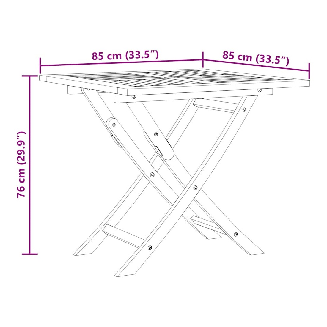 • Dimensions de la table : 85 x 85 x 76 cm (L x l x H)