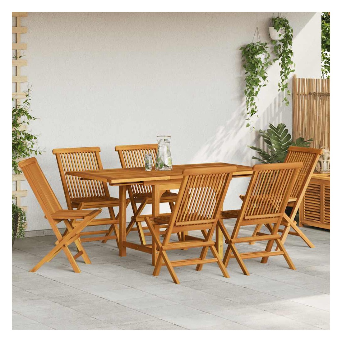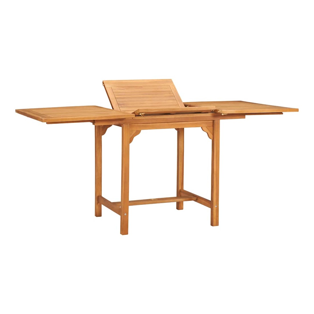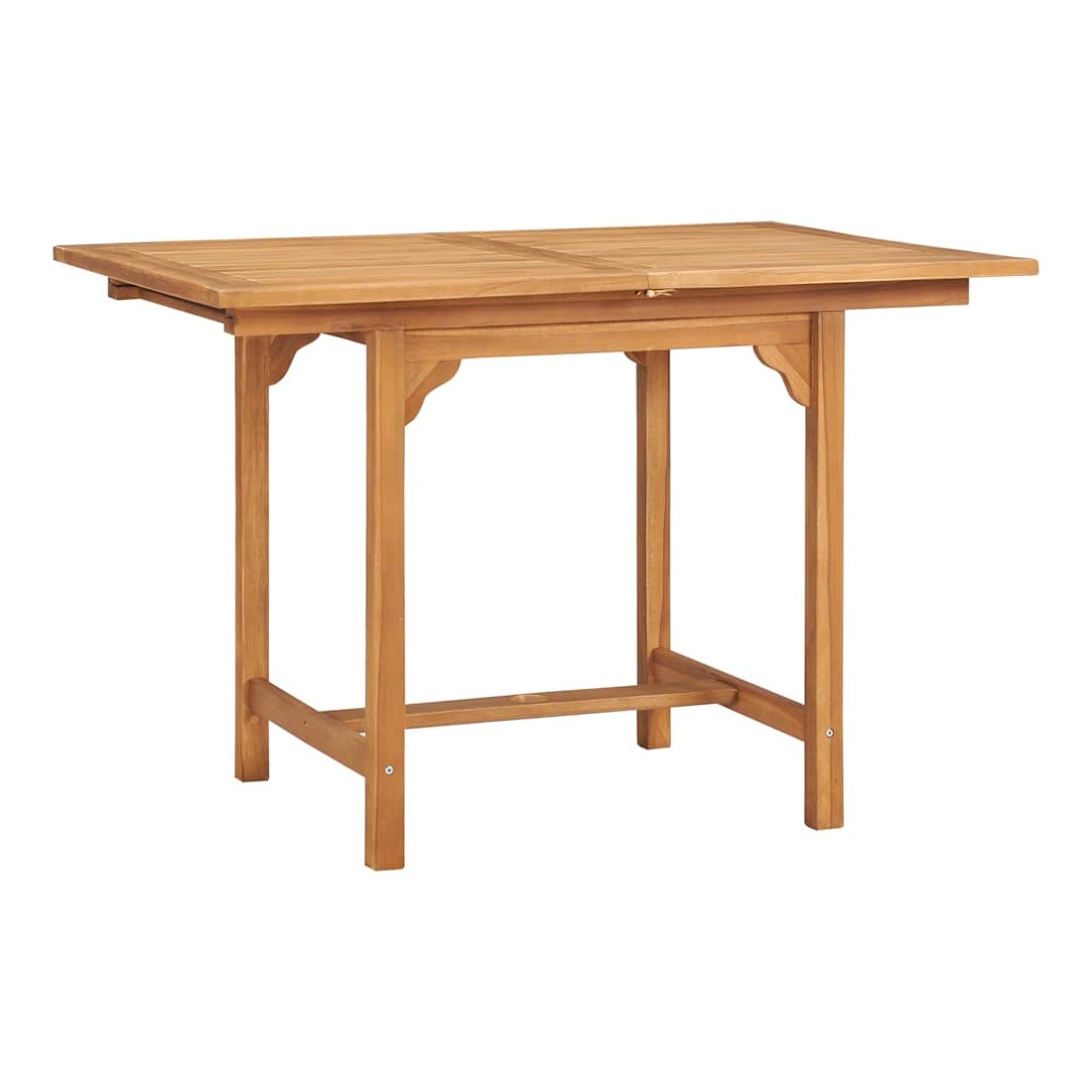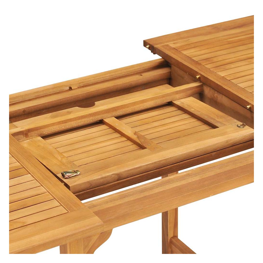 Cet ensemble de jardin en bois est parfait pour vos repas en plein air ou pour vous détendre dans le jardin ou sur le patio. Il est également idéal pour une utilisation à l'intérieur. Fabriquée en bois dur de teck extrêmement durable, cette pièce de meuble en teck a été chevronnée, séchée au four puis finement poncée pour lui donner un aspect très lisse. Le bois de teck est connu pour sa résistance exceptionnelle aux intempéries, ce qui le rend bien plus adapté aux meubles de jardin que tout autre type de bois. Le bois de teck est le choix idéal si vous souhaitez acheter une pièce de meubles de jardin durable. De plus, ils résistent également à l’humidité et aux insectes. L’ensemble est appliqué avec une belle finition pour donner au bois une couleur chaude. Avec son design spécial, la table de salle à manger peut être allongée au maximum de 160 cm lorsque de l’espace supplémentaire est nécessaire. Elle a également un trou pour le parasol pour fournir une protection contre le soleil. En outre, les chaises peuvent être facilement pliées lorsqu'elles ne sont pas utilisées. Ils vous offrent un confort et une grande commodité pour passer du temps avec votre famille et vos amis. En outre, cet ensemble est également facile à nettoyer avec un chiffon humide.