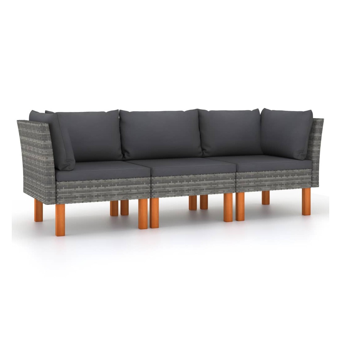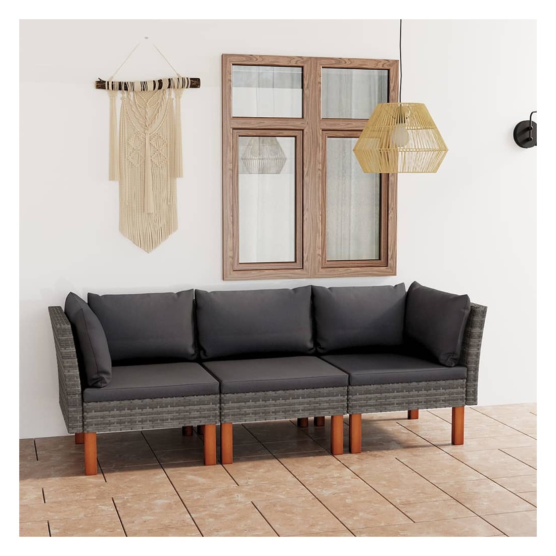 Ce canapé de jardin à 3 places, élégant et confortable, est un choix idéal pour vous détendre et profiter du beau temps, faire une sieste ou discuter avec votre famille ou vos amis. Doté d’un cadre en acier enduit de poudre recouvert de résine tressée, le canapé d’extérieur est résistant aux intempéries et facile à nettoyer. Les pieds en bois d’eucalyptus massif contribuent à sa robustesse et à sa stabilité. Le canapé d’extérieur est livré avec des coussins rembourrés pour un confort suprême. Dotée d'une fermeture éclair, la housse des coussins est amovible et lavable. De plus, ce siège de jardin peut être facilement déplacé pour s’adapter à n’importe quelle configuration grâce à sa construction légère. Remarque : afin de prolonger la durée de vie des meubles d'extérieur, nous vous rec