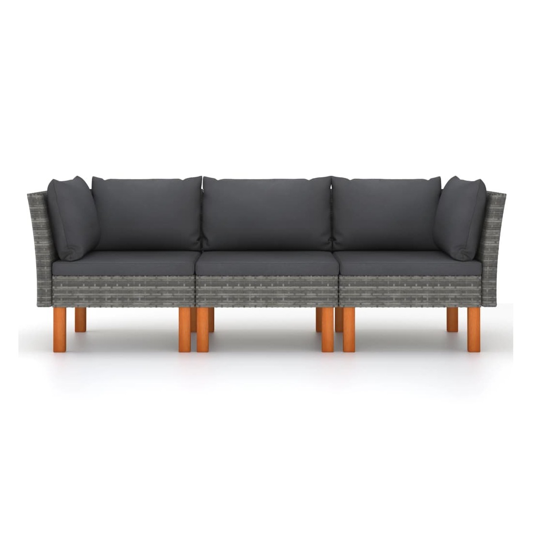 Canapé de jardin à 3 places avec coussins Gris Résine tressée