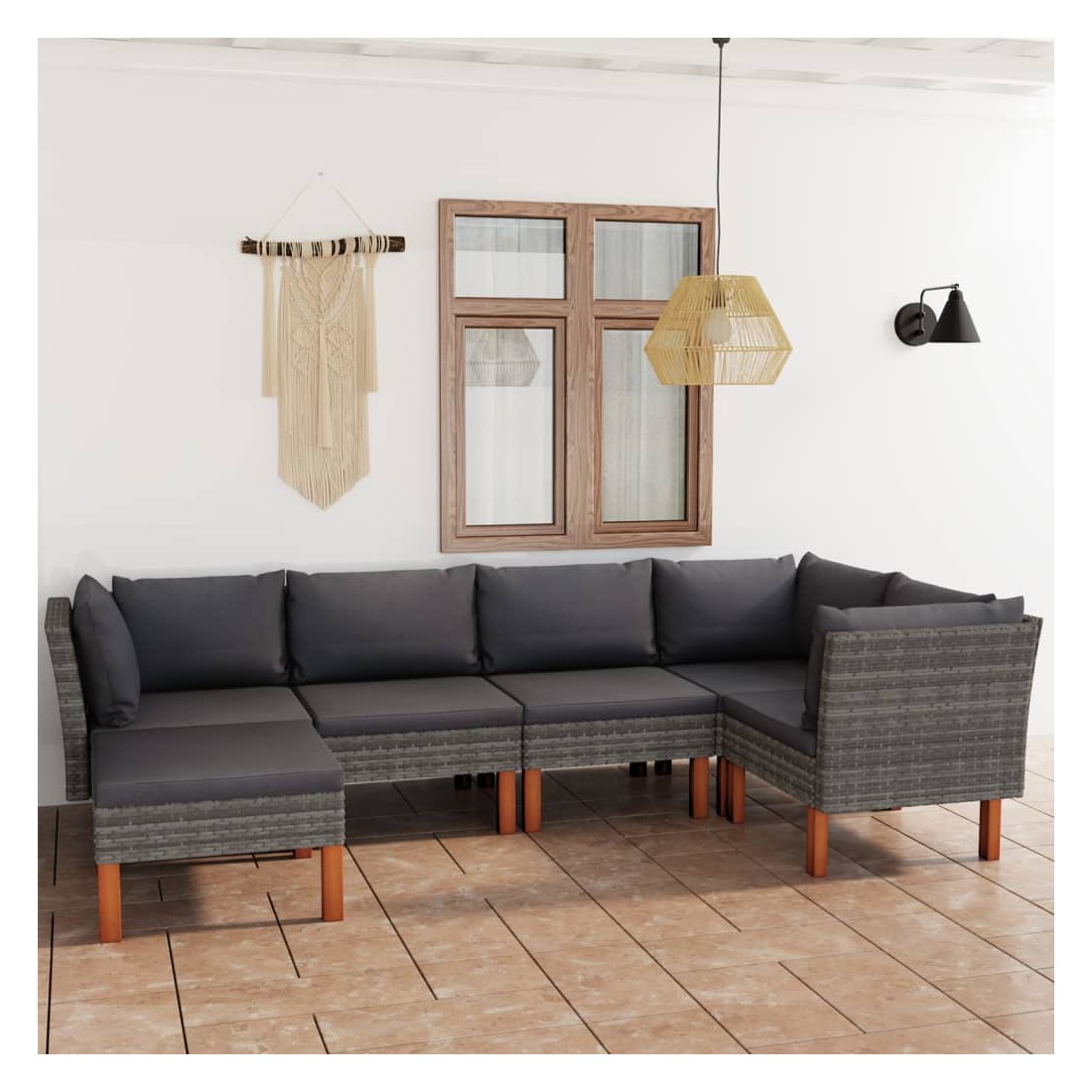 Cet ensemble de salon de jardin élégant et confortable, est un choix idéal pour vous détendre et profiter du beau temps, faire une sieste ou discuter avec votre famille ou vos amis. Doté d’un cadre en acier enduit de poudre recouvert de résine tressée, l'ensemble de canapé est résistant aux intempéries et facile à nettoyer. Les pieds en bois d’eucalyptus massif contribuent à sa robustesse et à sa stabilité. L'ensemble de salon est livré avec des coussins rembourrés pour un confort suprême. Dotée d'une fermeture éclair, la housse des coussins est amovible et lavable. De plus, cet ensemble de canapés d'extérieur peut être facilement déplacé pour s’adapter à n’importe quelle configuration grâce à sa construction légère. Remarque : afin de prolonger la durée de vie des meubles d'extérieur, nous vous recommandons de les protéger avec une housse imperméable.