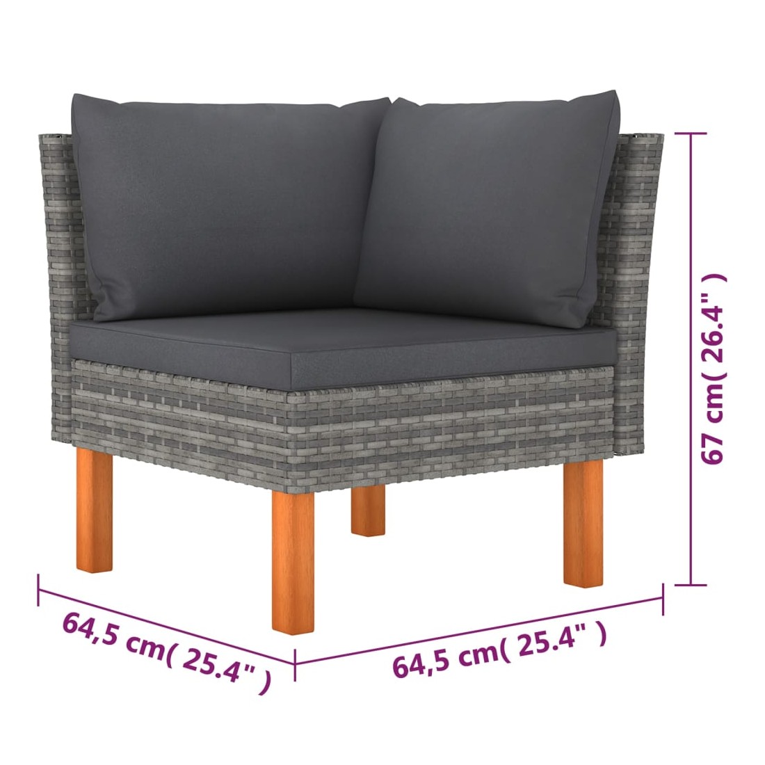 - Dimensions du canapé d'angle : 64,5 x 64,5 x 67 cm (l x P x H)
