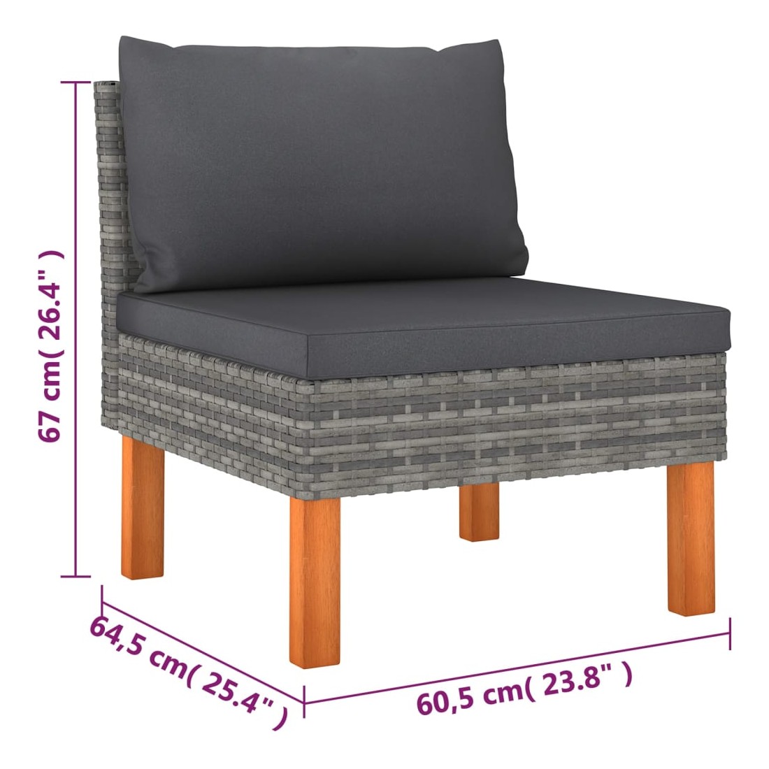 - Dimensions du canapé central : 60,5 x 64,5 x 67 cm (l x P x H)